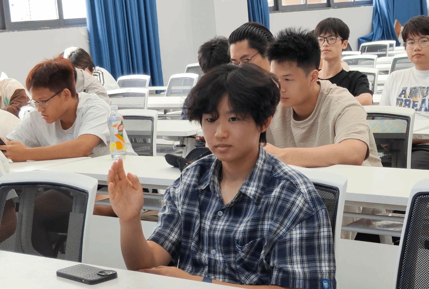 在常见穴位及功效介绍环节,张帅现场演示足三里、合谷穴、涌泉穴等人体常见保健穴位的位置,生动且详细的讲解按压其所能产生的功效,以及推拿手法和力度要点。同学们专注聆听,不少人还拿出手机记录关键内容,营造了一片浓厚的中医文化学习氛围。