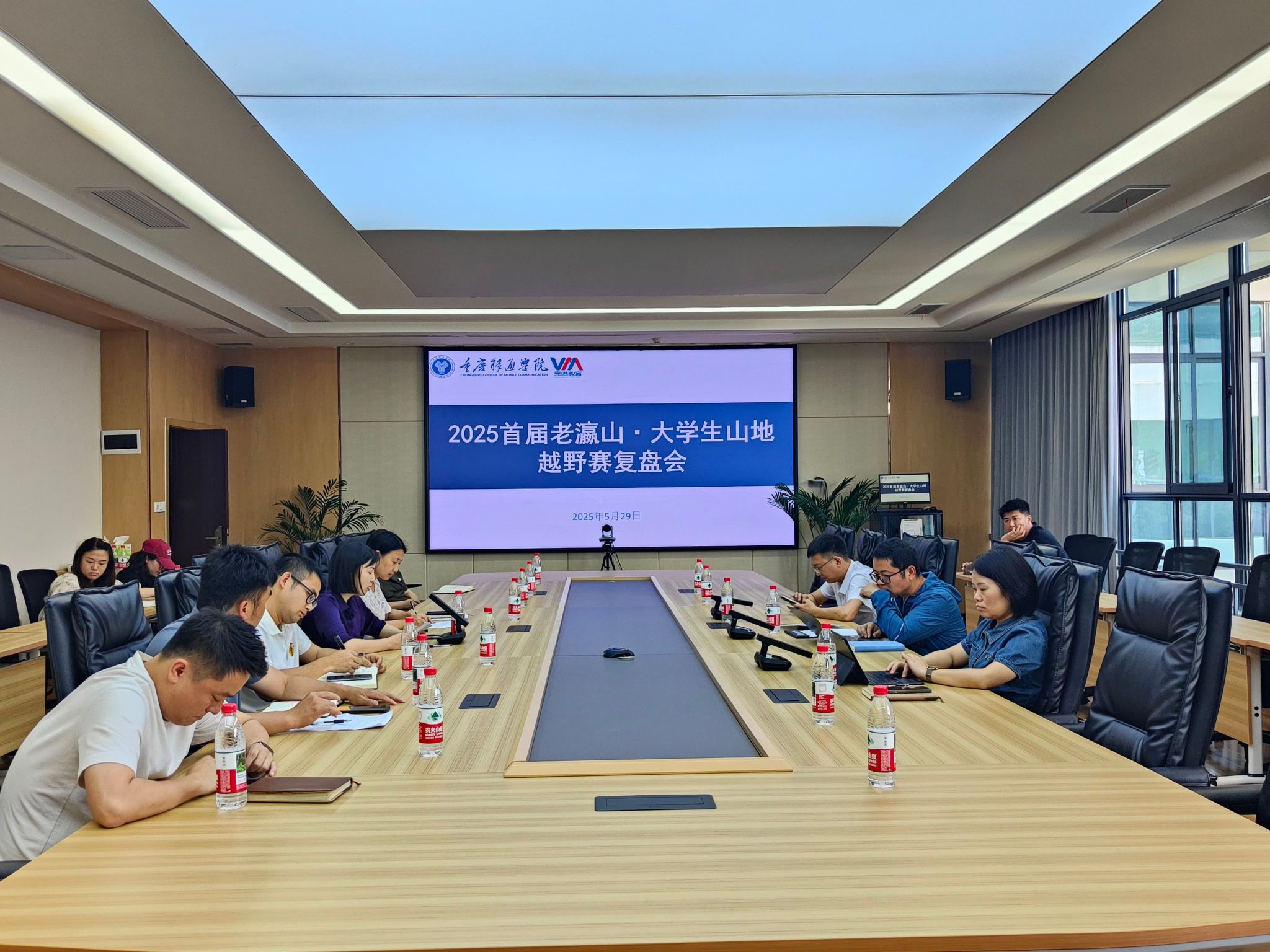 5月29日下午,大健康管理学院在瀛山图书馆424会议室成功召开2025首届老瀛山大学生山地越野赛复盘总结会议。重庆移通学院常务副校长王永周、副校长李文豹、校长助理谢银平携各职能部门负责人出席会议,与大健康管理学院院长杨瑜、学工办主任童学容及教师代表全面梳理赛事经验,共商未来发展蓝图。