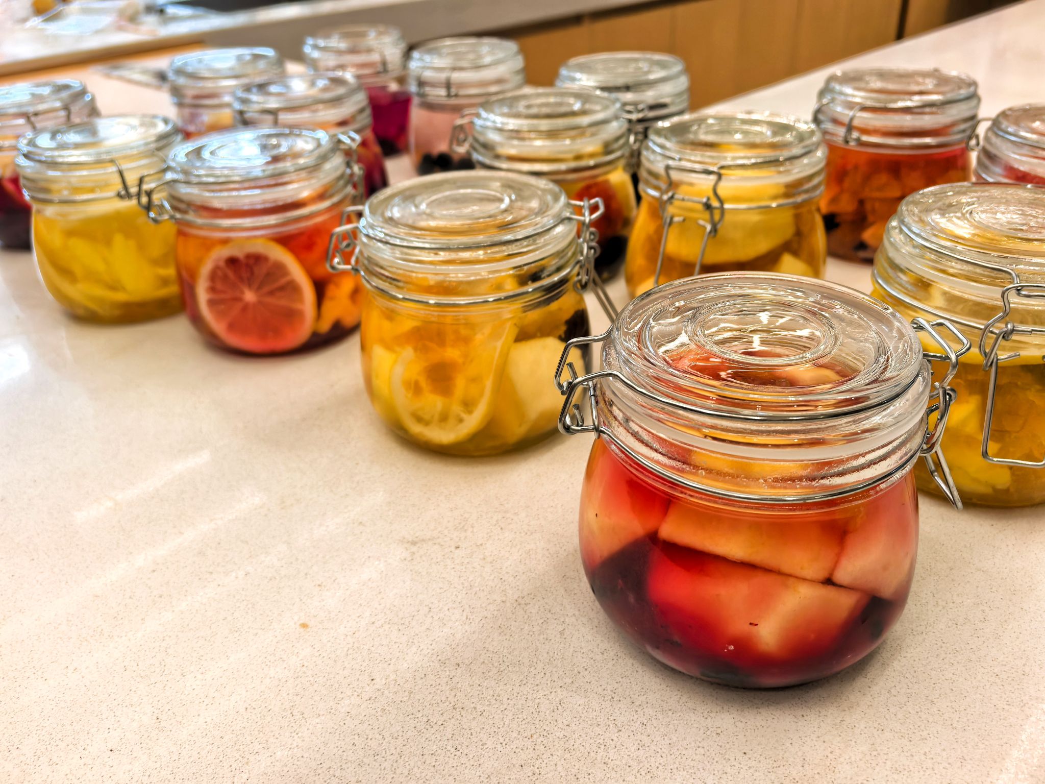 活动现场布置温馨雅致,长桌上整齐码放着新鲜青梅、冰糖、白酒与洁净玻璃罐等材料,节气氛围浓厚。参与者们三两结伴,或精心挑选青梅,或细致地将冰糖与青梅层层叠入罐中,将寻常食材化为饱含期许的青梅酒。一瓶瓶初酿的“初夏味道”陆续诞生,引得众人纷纷拍照记录。
