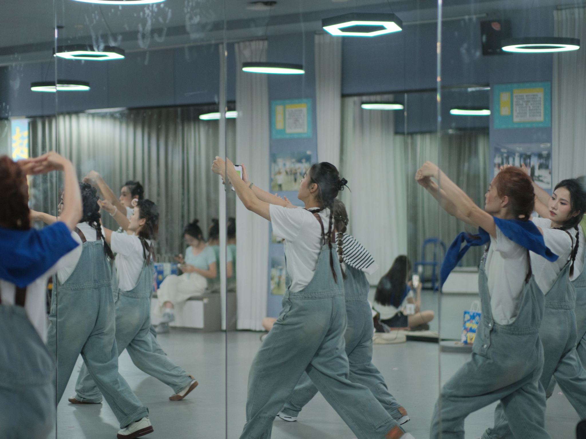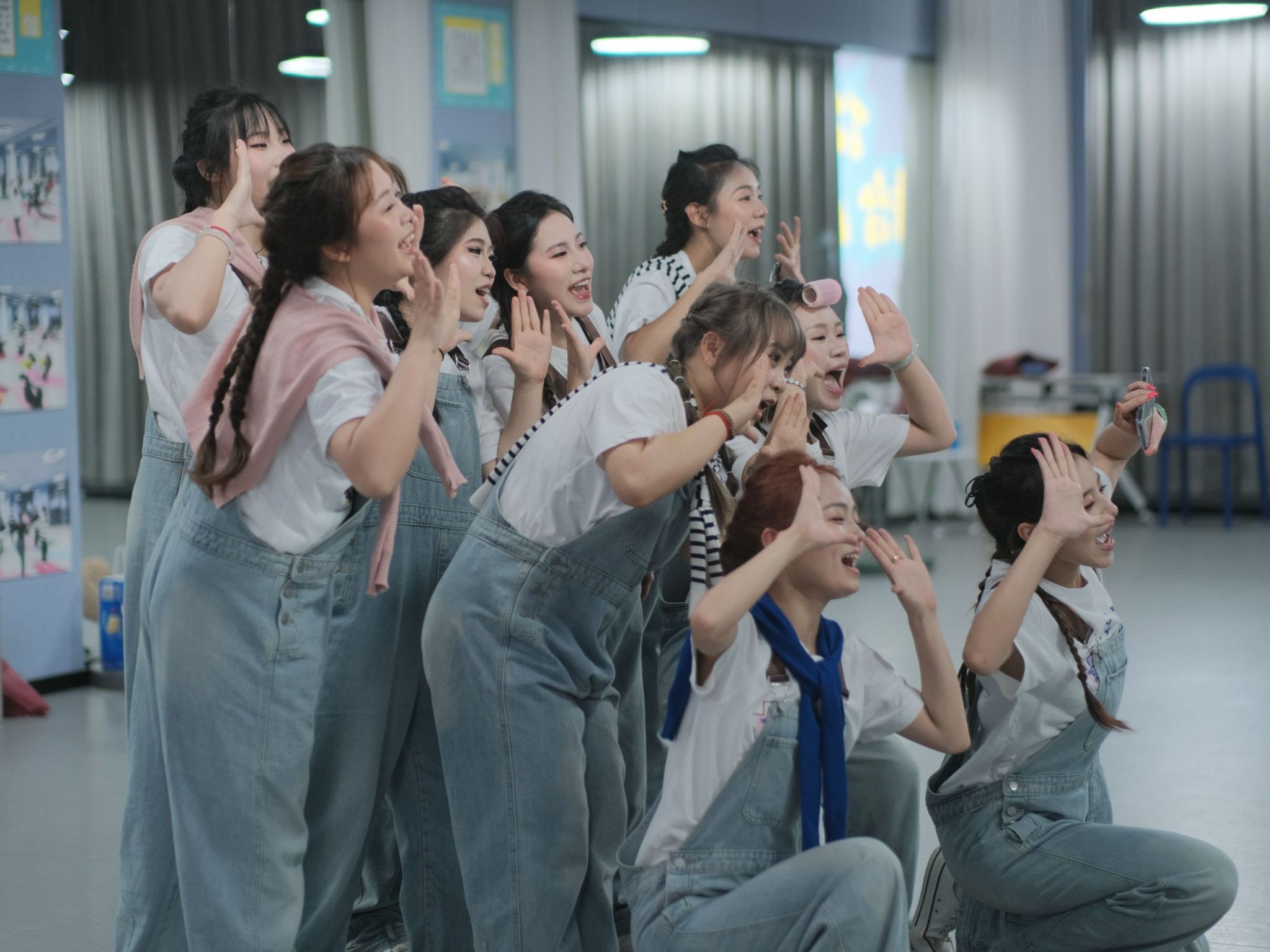 排练厅见证了他们的蜕变与坚持。队长张敏芮身兼多职,从舞蹈编排的构思、日常排练的组织协调,到背景视频的精心剪辑、道具使用的巧妙设计,事无巨细,默默承担,成为团队最坚实的后盾。而每一位队员,都用行动诠释着坚韧:有的同学膝盖练得青紫也咬牙坚持;有的同学即使身体不适,也从未缺席排练;更有无数次,当排练结束已是深夜,他们冒着小雨甚至大雨,结伴走回宿舍,星光与雨水共同映照着他们疲惫却满足的身影。从生涩到流畅,从拘谨到自信,每一次进步都凝聚着他们的心血。