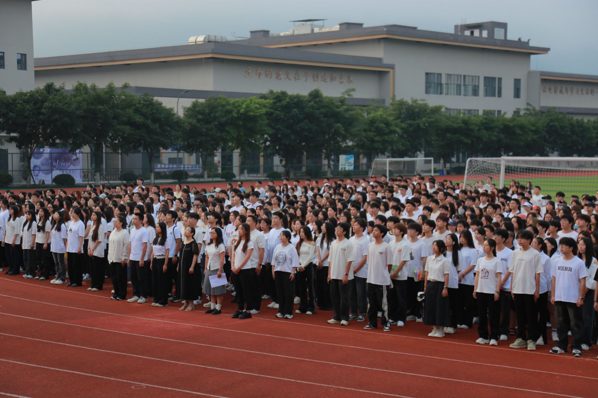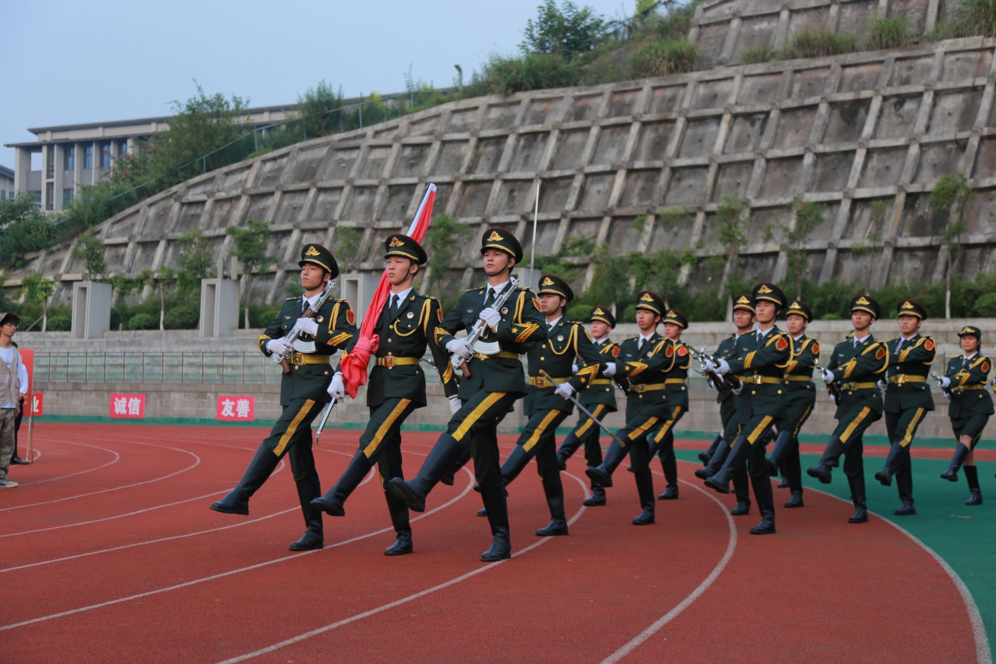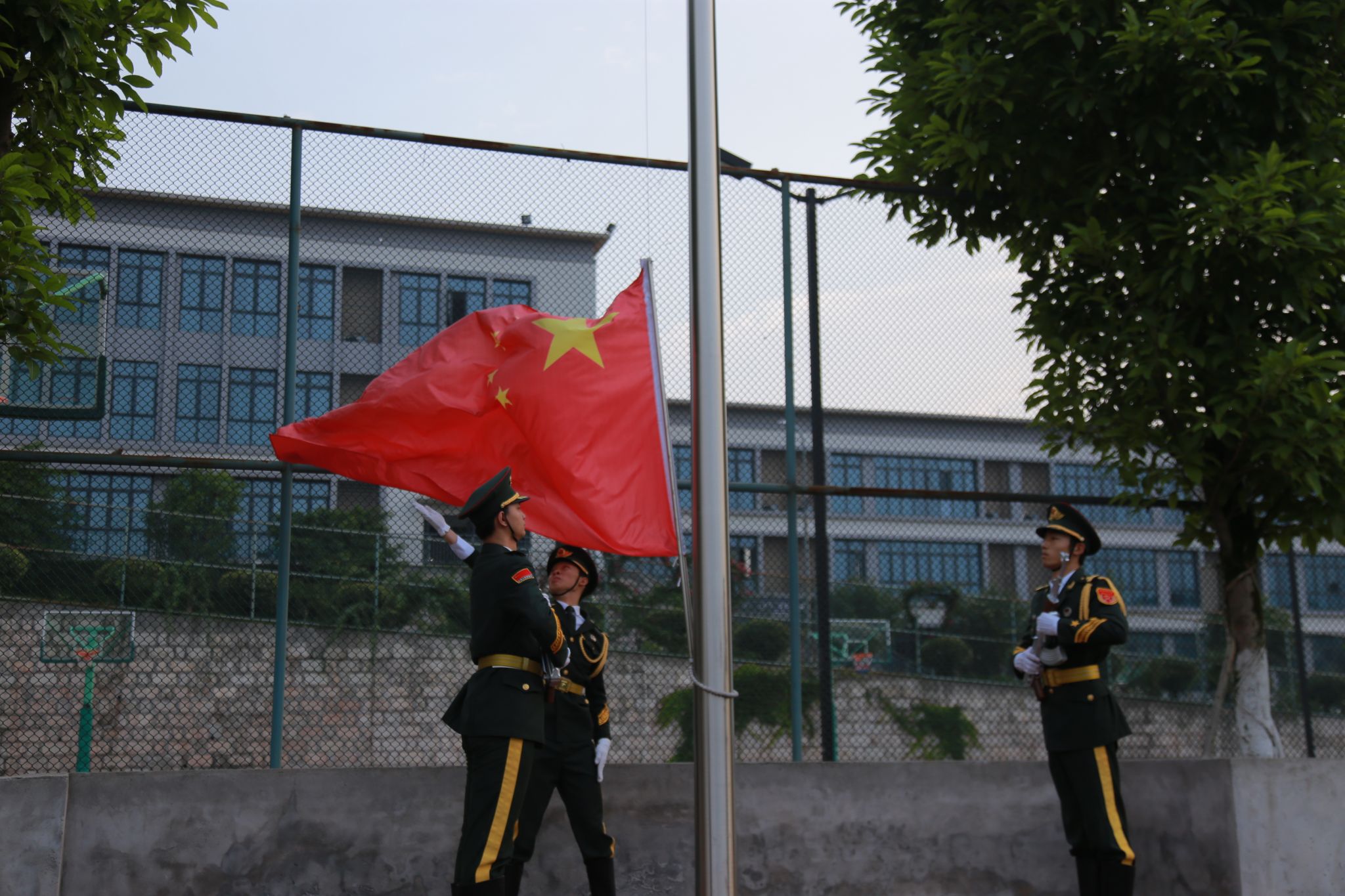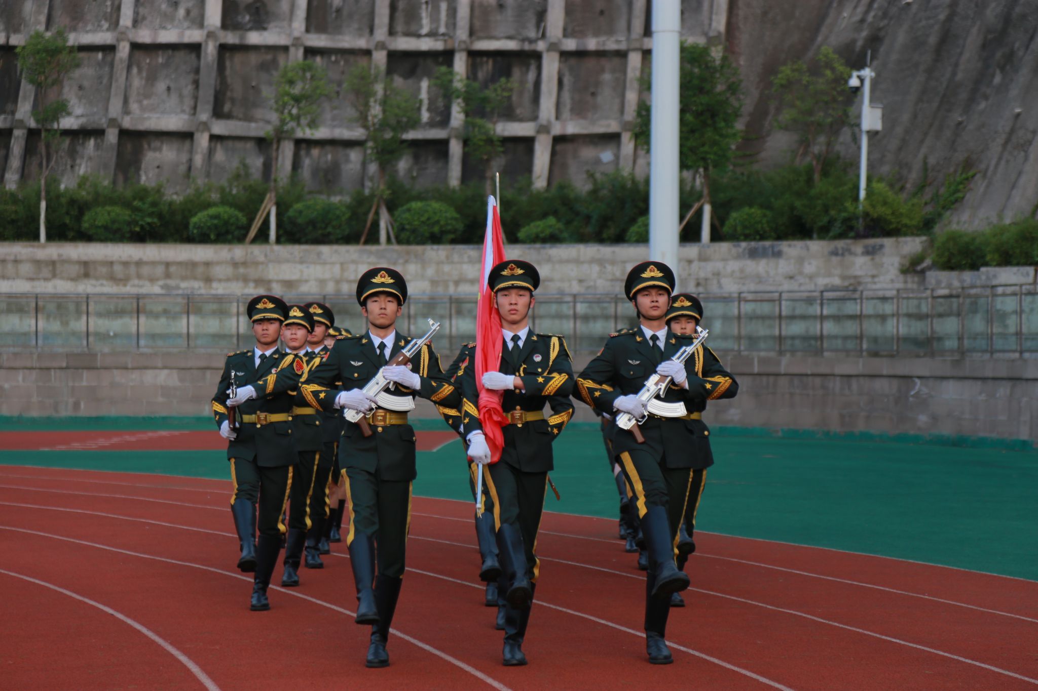 英姿飒爽的国旗护卫队队员步伐铿锵,护卫着鲜艳的五星红旗庄严入场。伴随激昂雄浑的《义勇军进行曲》,全体师生肃立,齐声高唱国歌,深情注目五星红旗在湛蓝天幕中冉冉升起。飘扬的国旗辉映着一张张青春坚毅的面庞,嘹亮的歌声中,澎湃的爱国豪情在每个人胸中激荡升腾。