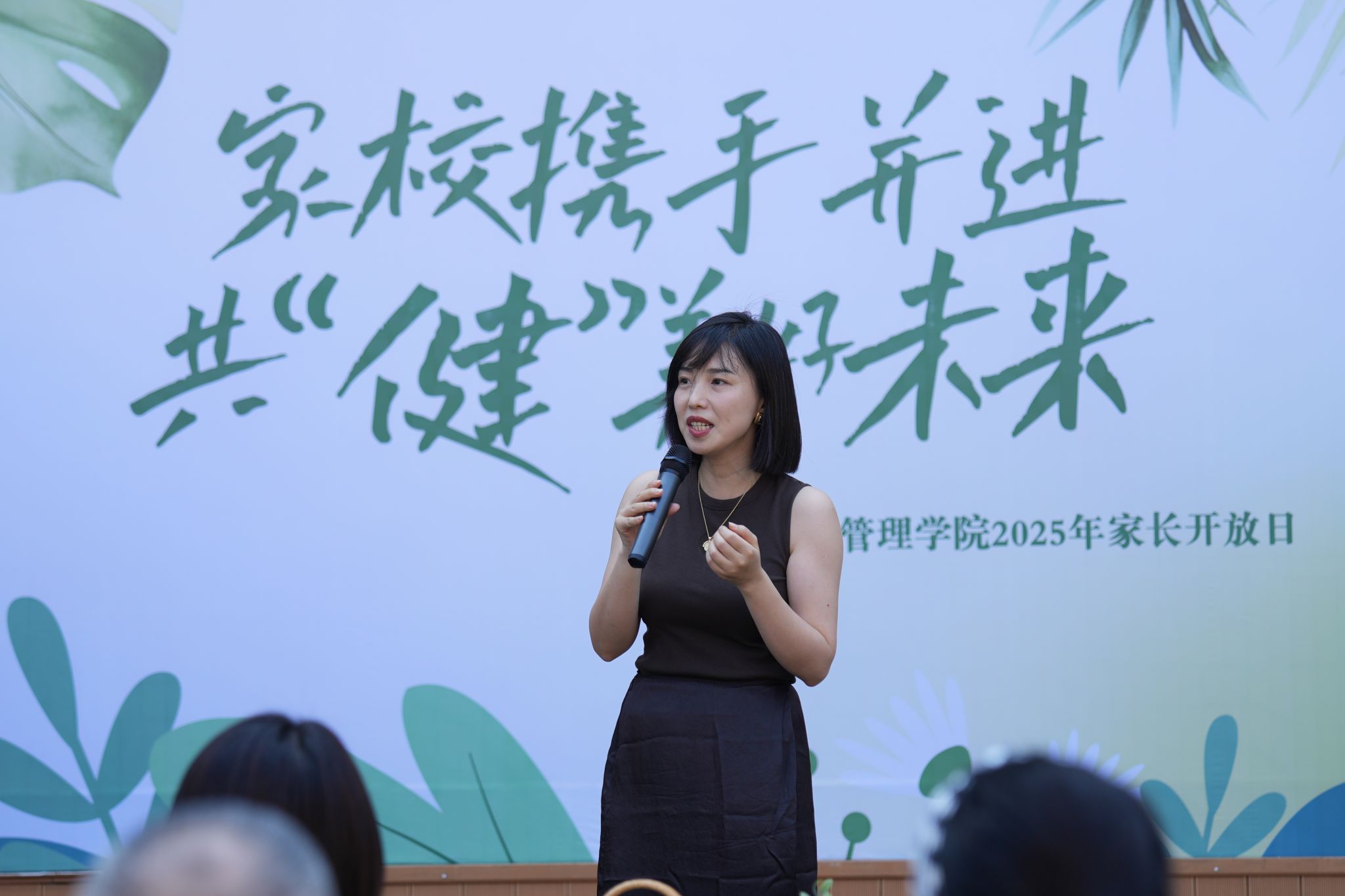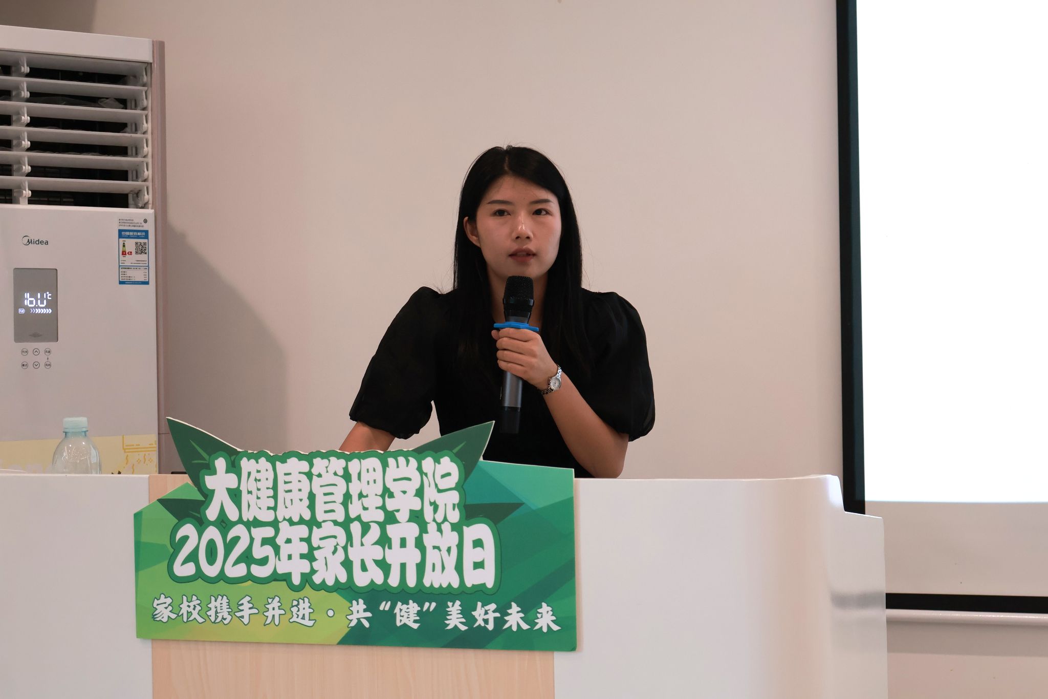大健康管理学院院长杨瑜热情致辞,拉开了家长深度体验学子校园生活、共筑育人合力的序幕。