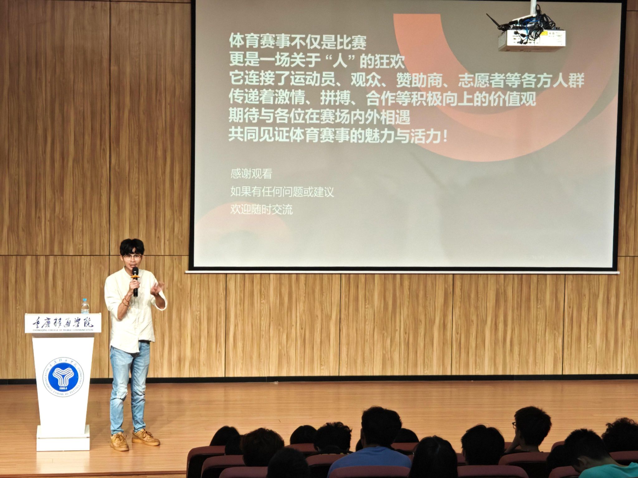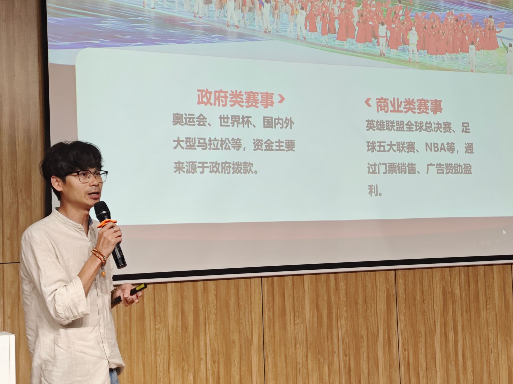 讲座中,刘玉琢总监以“体育赛事的魅力与运营之道”为主题,围绕体育赛事的策划、运维及就业前景进行了深入浅出的讲解。他首先介绍了体育赛事的分类与策划的具体步骤,特别强调了赛事立项调研与定位的重要性。在运维部分,刘总监分享了前期筹备、现场执行及赛事收尾的三个阶段要点,特别是如何通过时间倒排、团队分工等确保赛事的顺利进行。