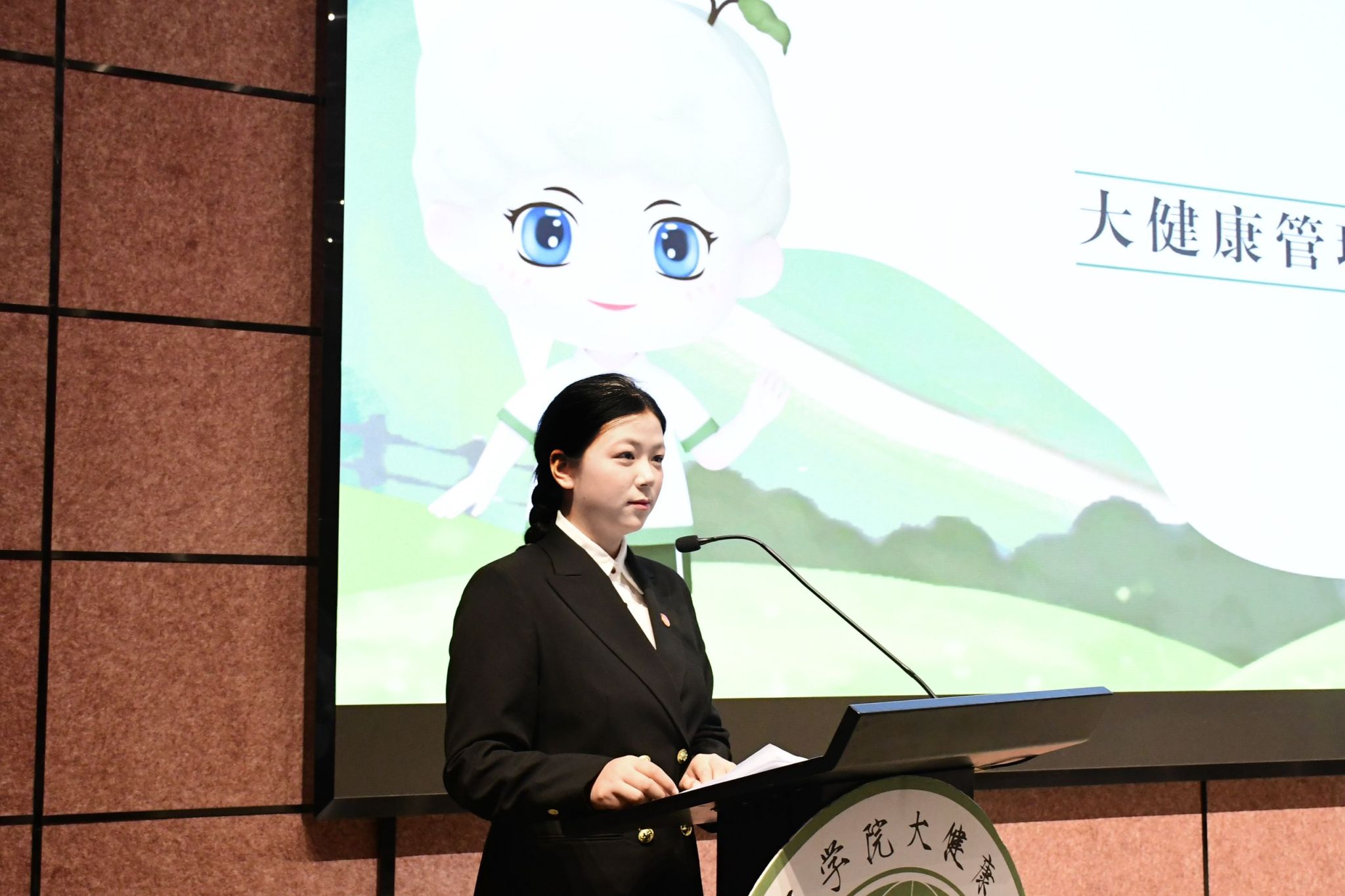 大会伊始,大健康管理学院学工办主任童学容老师致辞,对过去一年学生组织各个部门所取得的显著成绩给予高度评价,并寄语新一届学生干部。