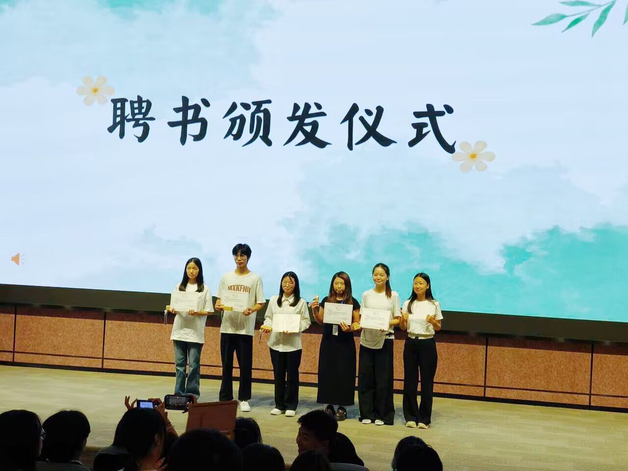 随后,学院老师为2024至2025学年学生主席、干部、干事代表颁发聘书,象征着责任与使命的传递。