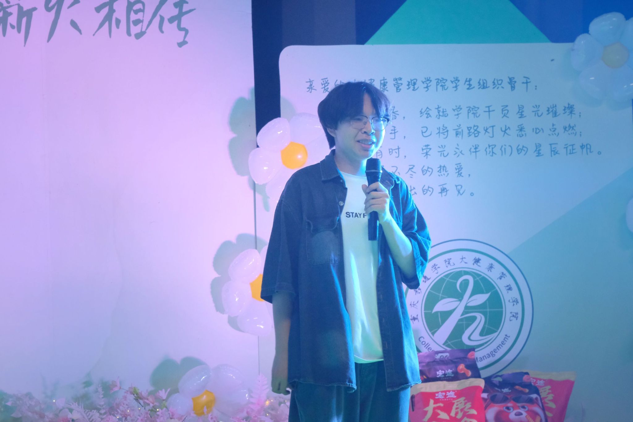 大会尾声,大健康管理学院团总支书记彭兰萱老师发表讲话,她肯定了卸任骨干功绩,寄语接任骨干,并号召大家薪火相传,聚散共进,共创学院新篇章。