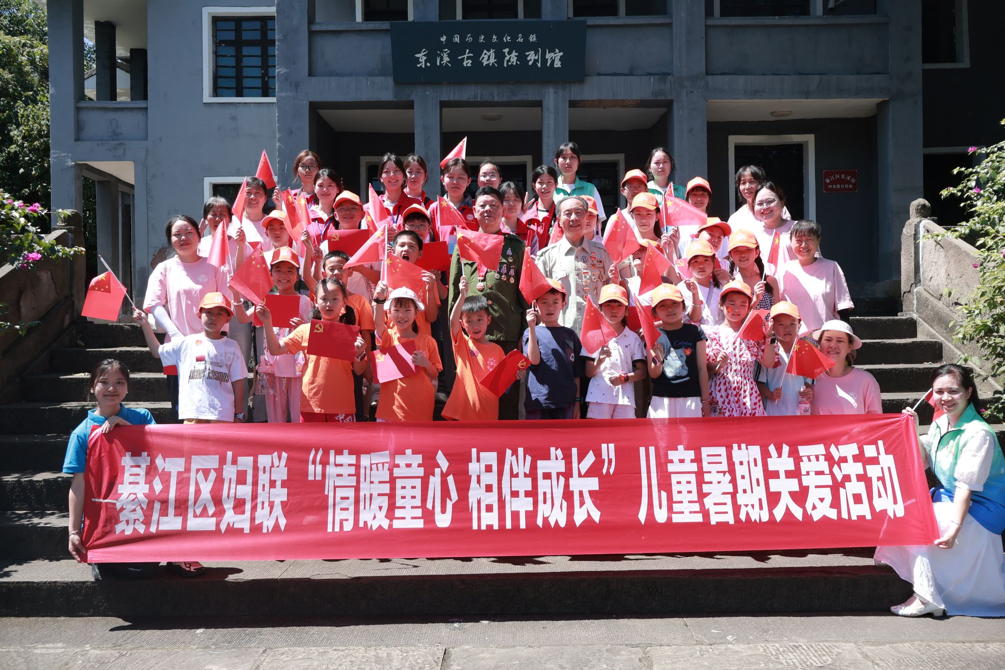 7月4日,綦江区妇联、团区委、区退役军人事务局携手重庆移通学院“綦韵东溪·移路同行”教育关爱服务团联合打造“假期第一堂故事音乐荟”暨“情暖童心 相伴成长”儿童暑期关爱活动,以社区“爱心妈妈”与大学生志愿者组成的“知心姐姐”温情陪伴为特色,为青少年厚植家国情怀注入新活力。