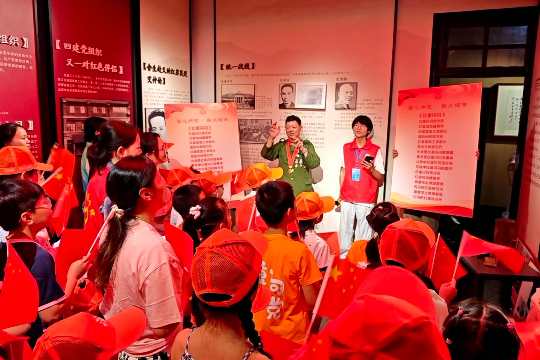 随后,两位老兵化身“红色讲师”,党旗、国旗与军旗,将党旗、国旗与军旗上每一抹红色蕴含的信仰、每一颗星辰寄托的理想,向孩子们细细道来。