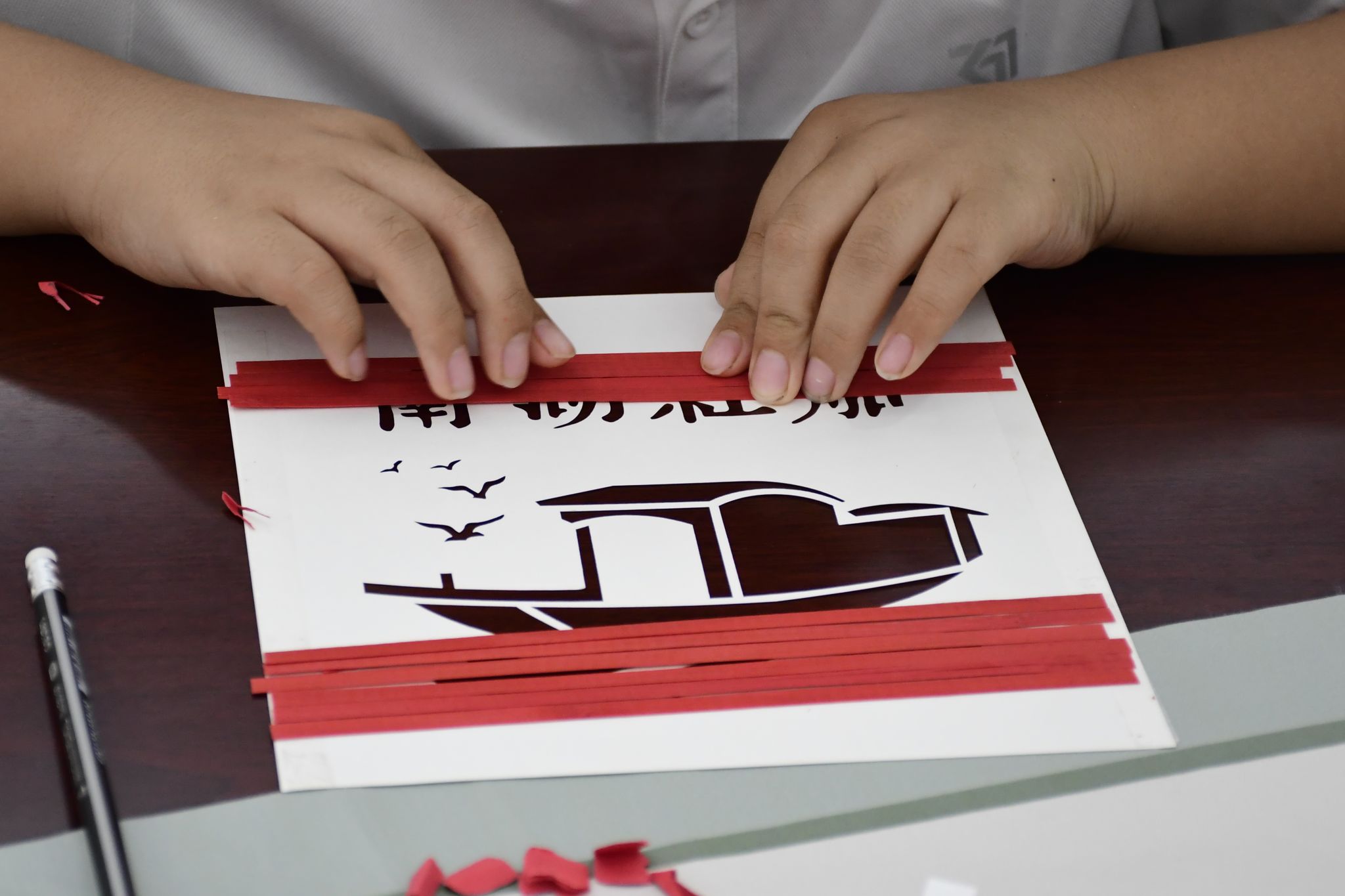 柔韧的竹篾在孩子们手中穿梭,逐渐化作红星、帆船。经纬交织间,古老的非遗技艺在童稚的指尖焕发新生。