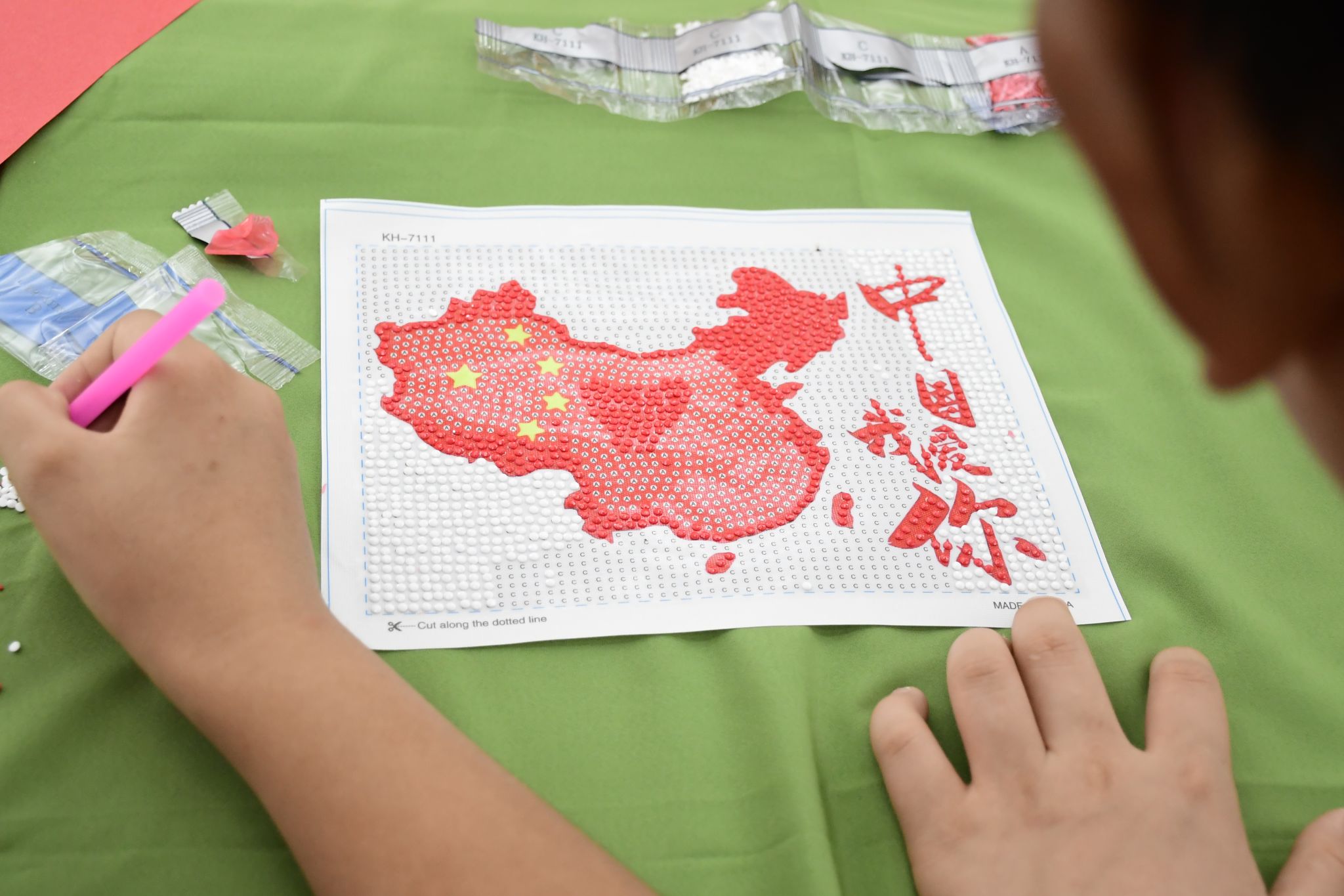 “这颗红星要贴得亮亮的!”活动现场,稚嫩的童声此起彼伏。巍峨的华表、飘扬的五星红旗……在孩子们专注的指尖下,逐渐由千颗闪亮的“钻石”拼贴而成,宏大叙事化作触手可及的璀璨图景。