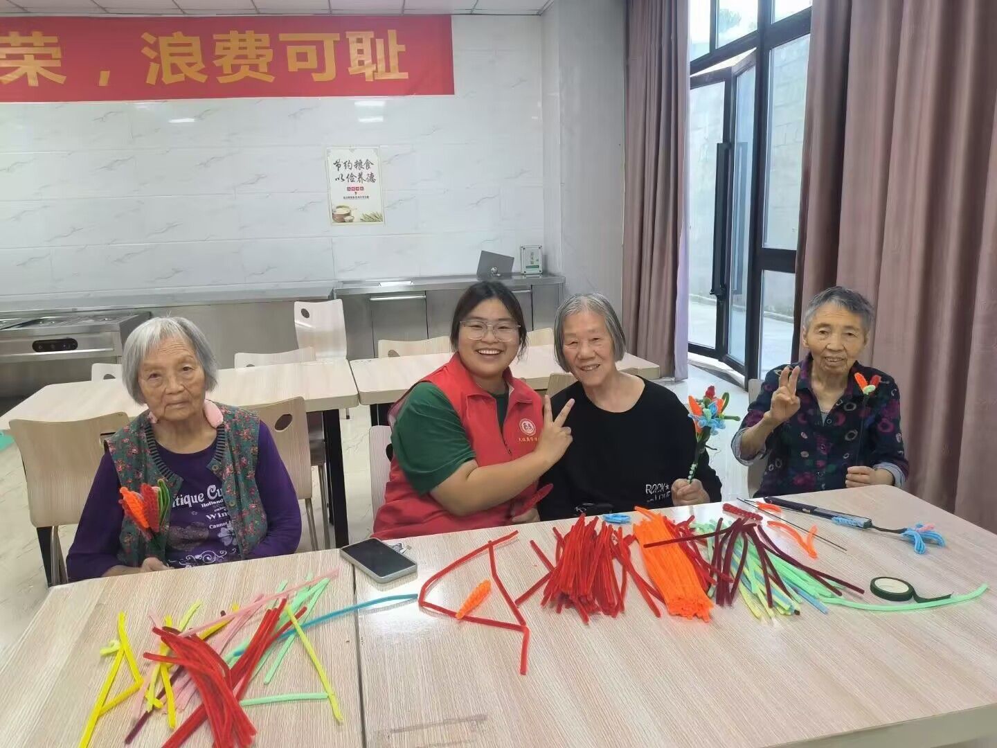 活动伊始,志愿者们贴心询问老人身体状况,陪他们聊天,拉近彼此距离。随后,大家共同制作扭扭棒作品,不仅锻炼了老人的手部灵活度,也促进了其手眼协调的能力。