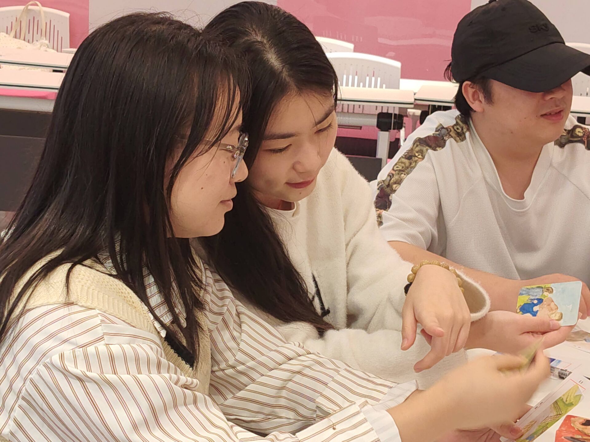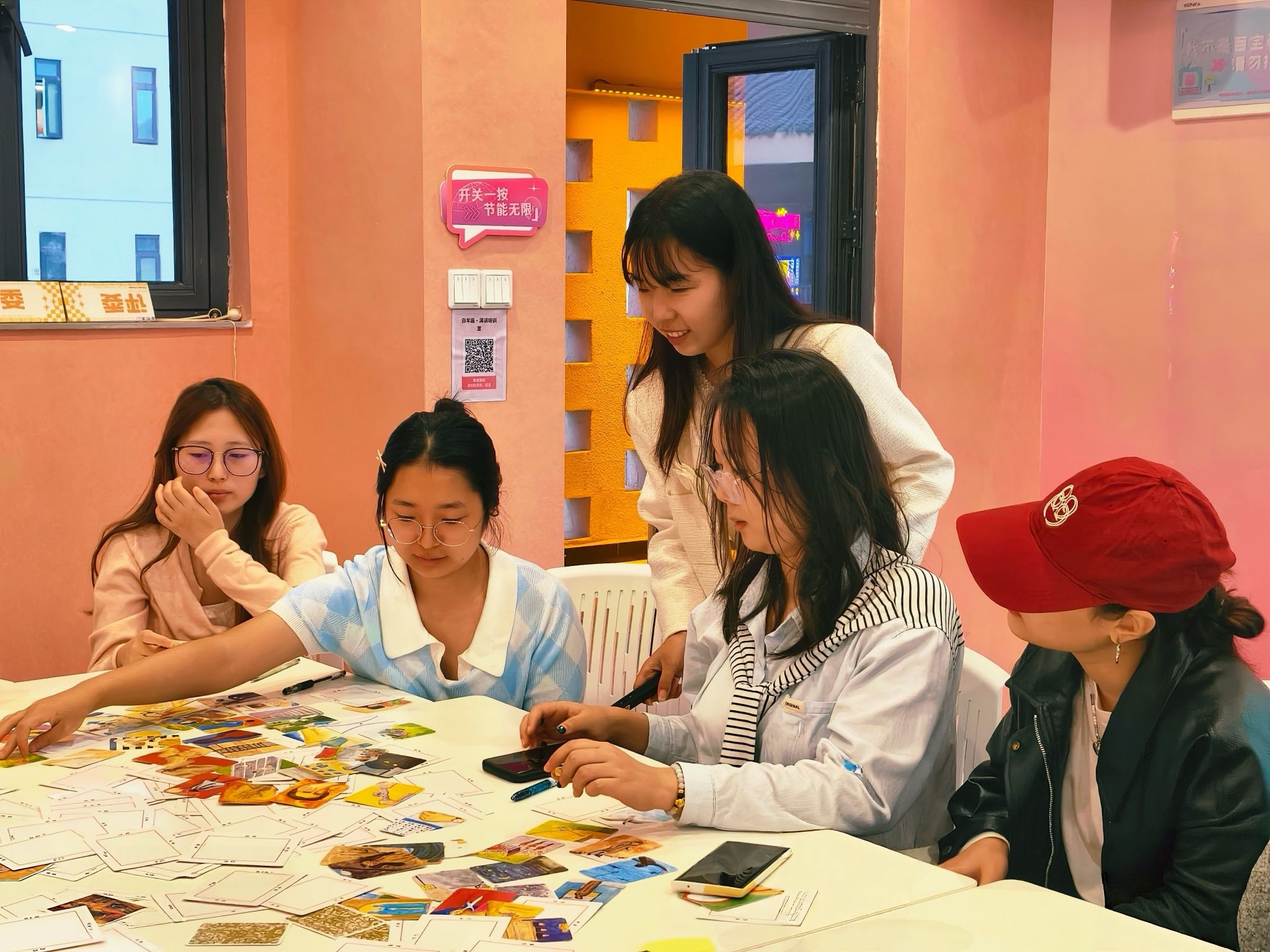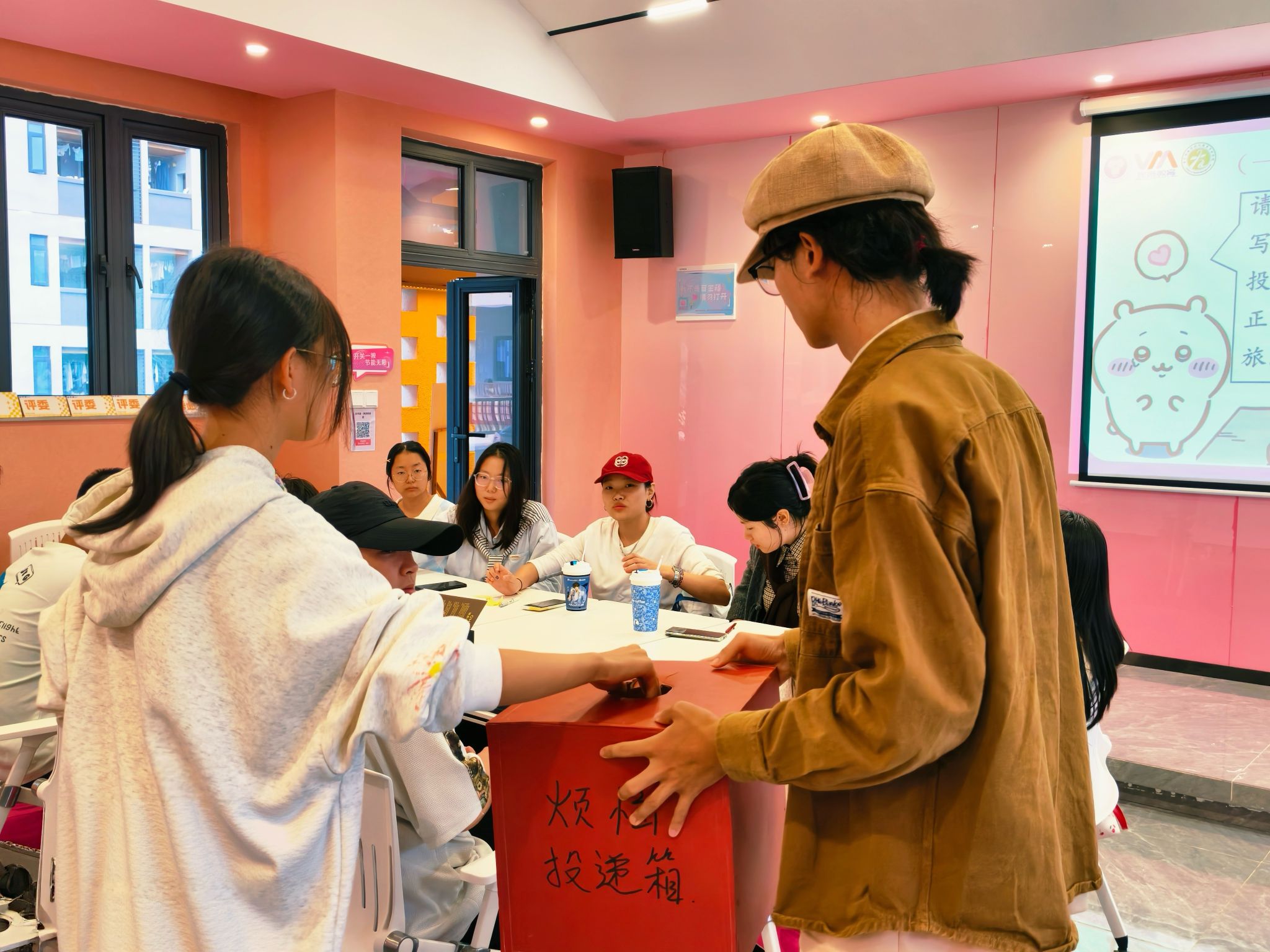 活动以“解忧杂货铺”为主线,分为五个环节逐步展开。在“走进杂货铺”环节,同学们将“近期小烦恼”写在“烦恼纸条”上投入“烦恼投递箱”,正式开启“解忧探心”之旅;随后在“解锁情绪转化工具箱”环节,邱璐老师讲解情绪ABC理论,并通过“想法转一转”活动,让同学们抽取纸条,引导同学们认识到真正决定情绪的并非事件本身,而是对事件的信念和想法;在“开启我的烦恼杂货铺”环节,同学们借助OH卡进行自我探索,勇敢表达内心真实感受;紧接着,在“组建解忧杂货铺分店”环节,大家两人一组,通过抽牌、换牌、说牌,扮演“心灵顾问”,用卡牌帮助对方转换想法、改变情绪。最后,在“解忧杂货铺打烊”环节,两位同学分享了自己的活动感受。