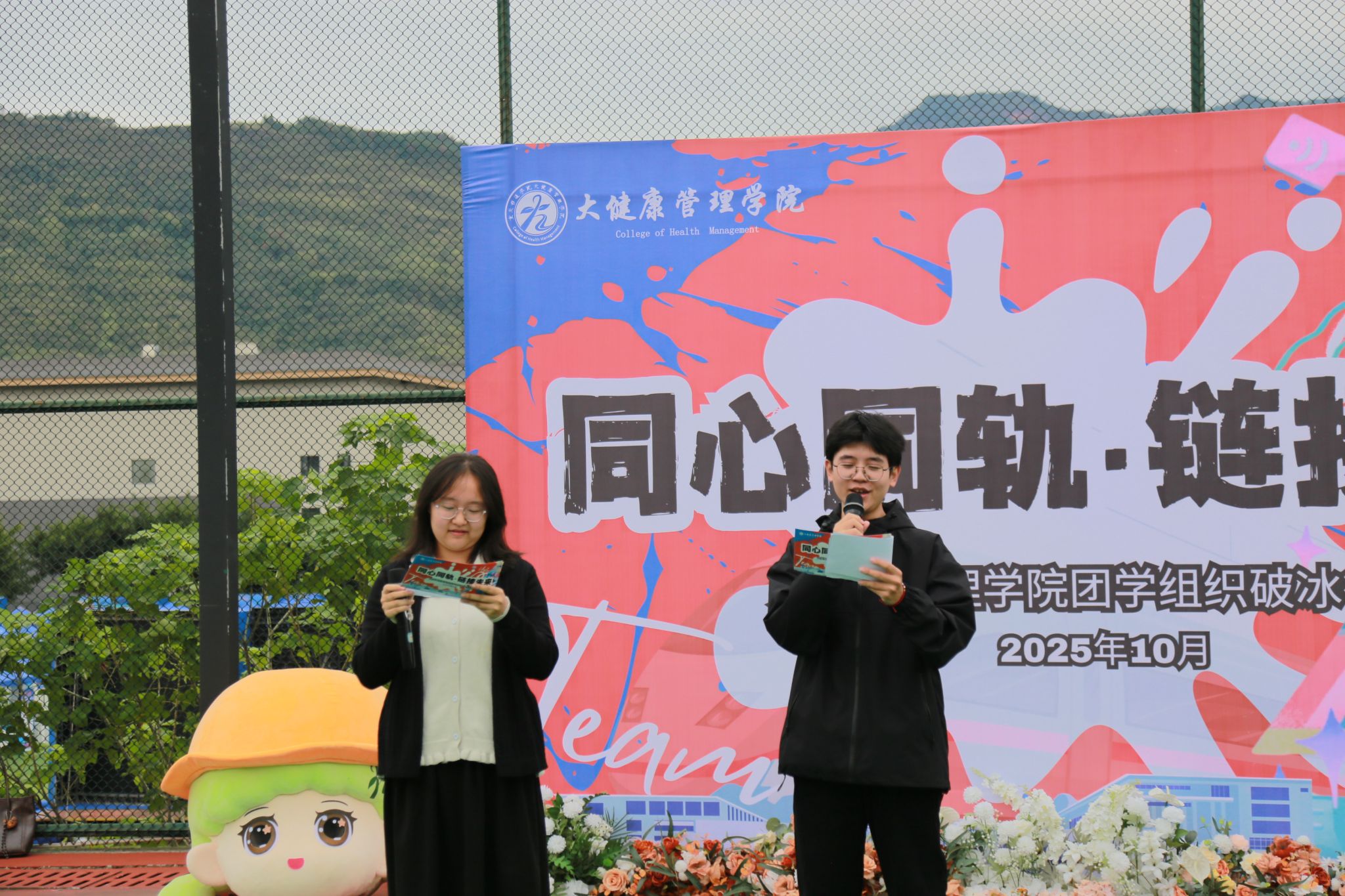 秋高气爽,活力迸发。10月22日,一场以“同心同轨·链接未来”为主题的户外体验日活动在行者楼篮球场热烈举行。大健康管理学院师生齐聚一堂,旨在通过趣味互动深化情谊、凝聚合力。本次活动由刘怡铭、张钰欣携手主持,学院党总支副书记童学容、团总支书记彭兰萱、各版块指导老师及全体学生组织成员共同参与。