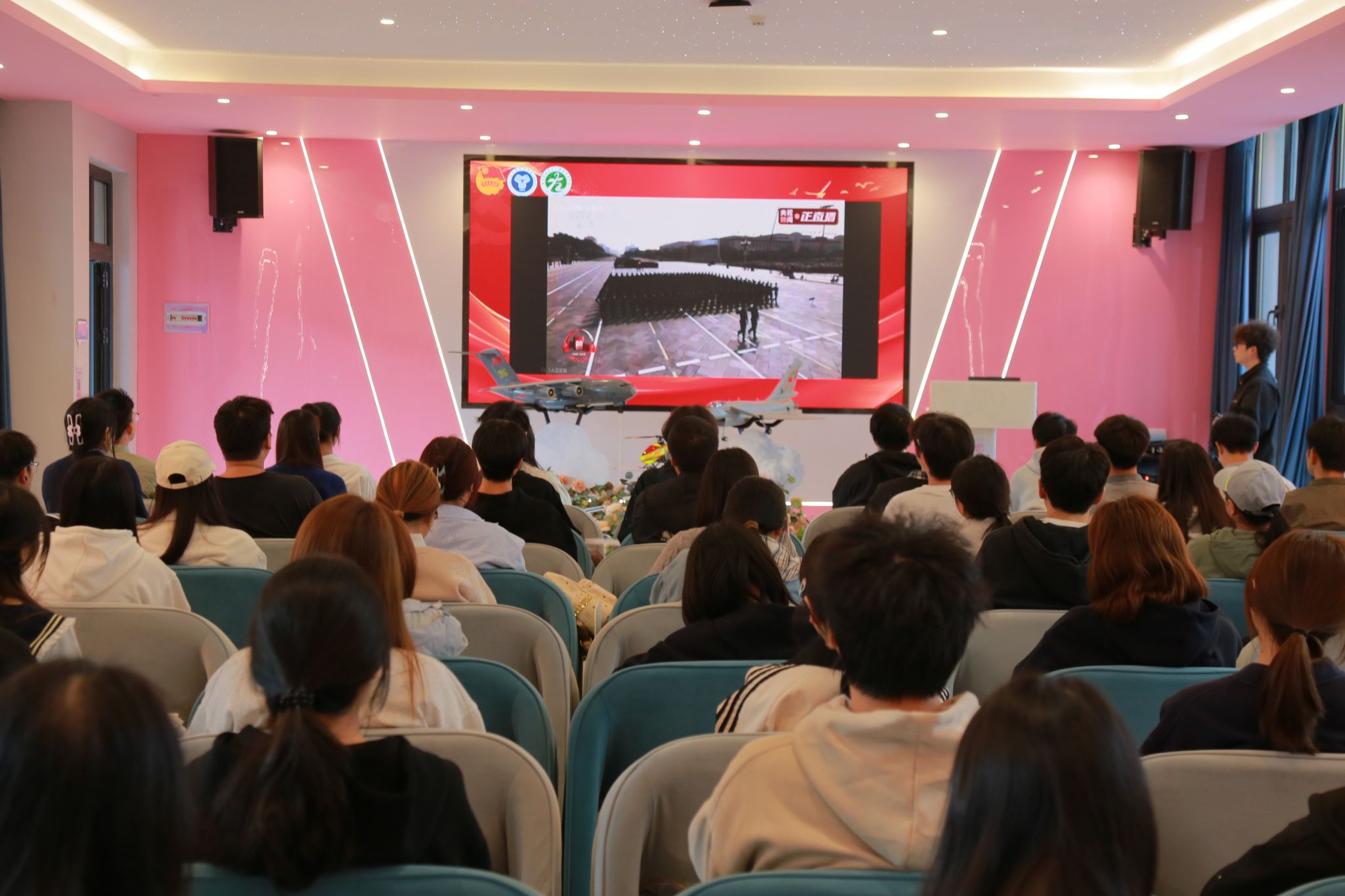 活动伊始,一段融合九三阅兵雄姿、C919翱翔等国家成就与学生日常生活的混剪视频,迅速搭建起“大国”与“小我”之间的桥梁,营造出庄重而奋进的现场氛围。