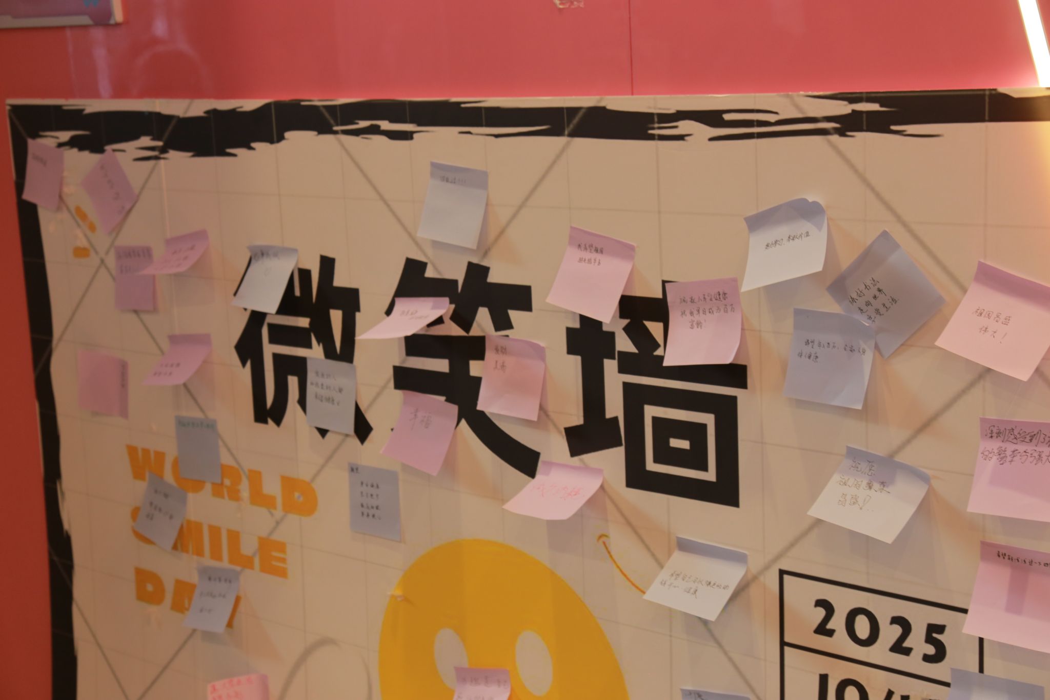 最后,辅导员彭兰萱以“平凡之路,完满之责”总结,鼓励大家将爱国情怀融入日常学习。全体同学将写有祝福与目标的卡片郑重贴上“微笑墙”,立下奋斗誓言,将活动推向高潮。