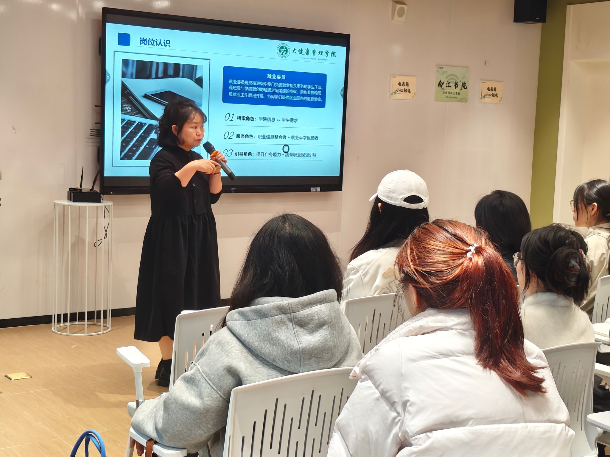 为帮助学子明晰职业方向、提升求职能力,10月29日16时,一场以“聚力就业指导,赋能未来发展”为主题的就业指导讲座在南江书院博学·悦享互动空间顺利举行。活动特邀大健康管理学院就创办主任杨铭担任主讲,2027届各班就业委员积极参与。