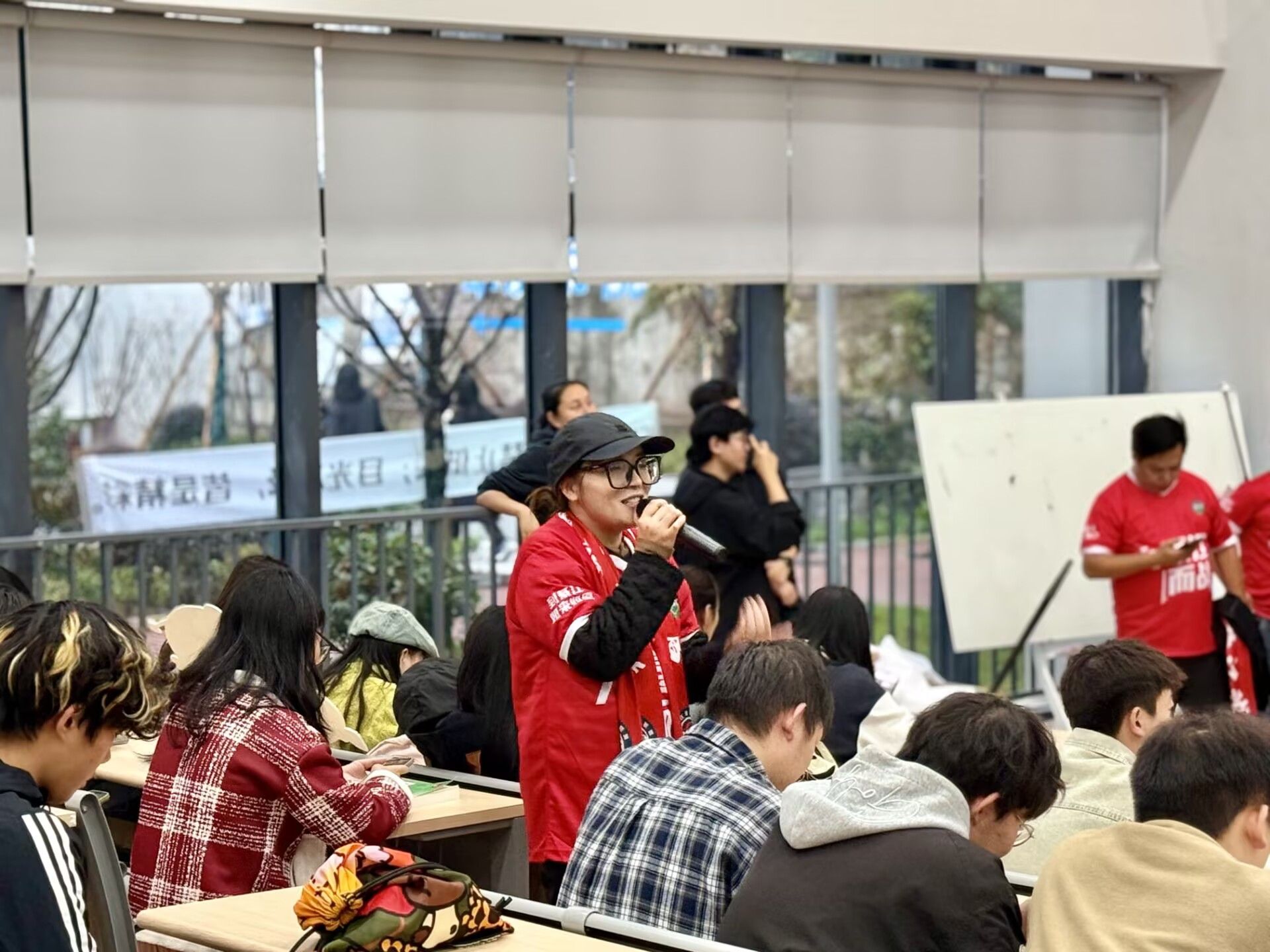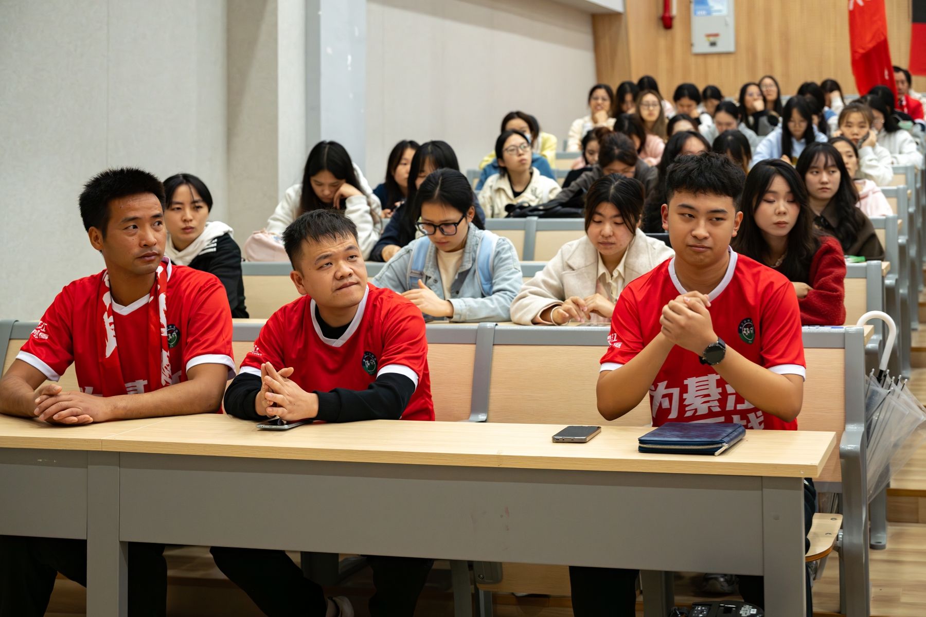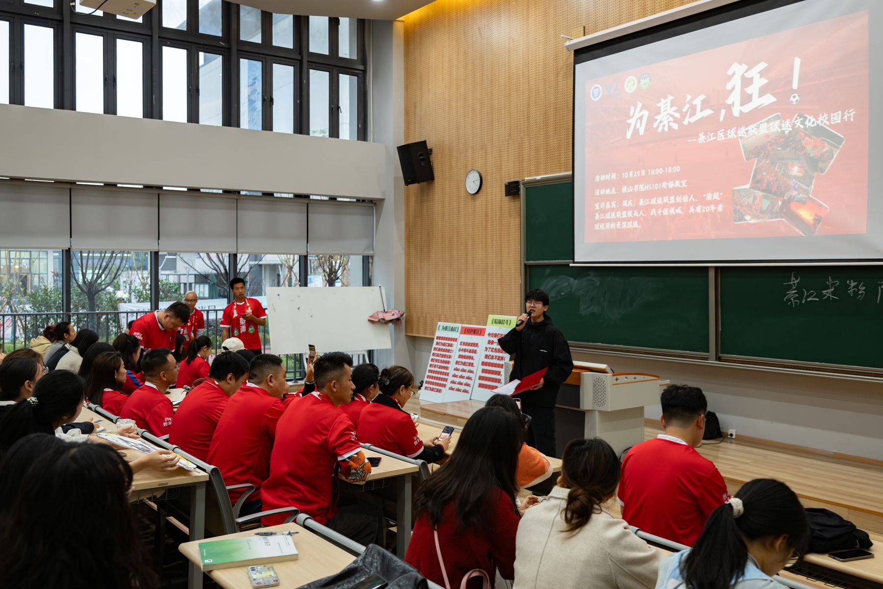 活动伊始,室内宣讲环节拉开帷幕。綦江区球迷联盟详细介绍了“渝超”联赛与球迷组织的发展历程以及核心的球迷文化,带领大家走进足球世界的精彩幕后,让同学们对活动有了全面了解。同时有已加入球迷联盟的在校学生向大家分享了他的独特感受,现场气氛持续升温。