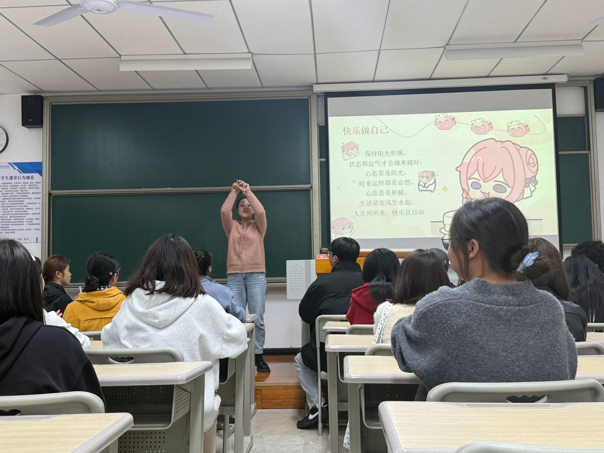 为积极响应加强大学生心理健康教育的号召,普及心理健康知识,营造积极向上的校园氛围,大健康管理学院2025级健康服务与管理(专升本)2班于2025年11月2日在仁者楼404教室成功举办了一场以“阳光心态,快乐人生”为主题的心理健康教育班会。本次活动旨在教会同学们如何调整自身心态、降低自身压力,以更健康、阳光的心态面对学习和生活。