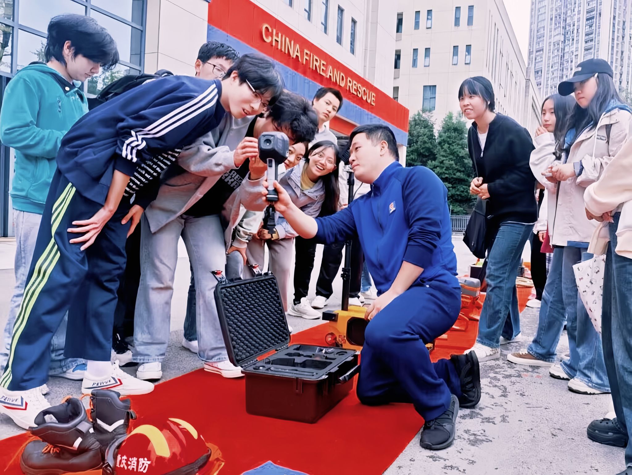 为筑牢校园消防安全,提升学生应急自救能力,2025年11月5日,大健康管理学院携手綦江区消防救援支队,开展以“体验消防零距离·掌握应急护身技”为主题的消防安全实践活动,进行了“专业讲解、器材体验、模拟逃生”三位一体的沉浸式学习。