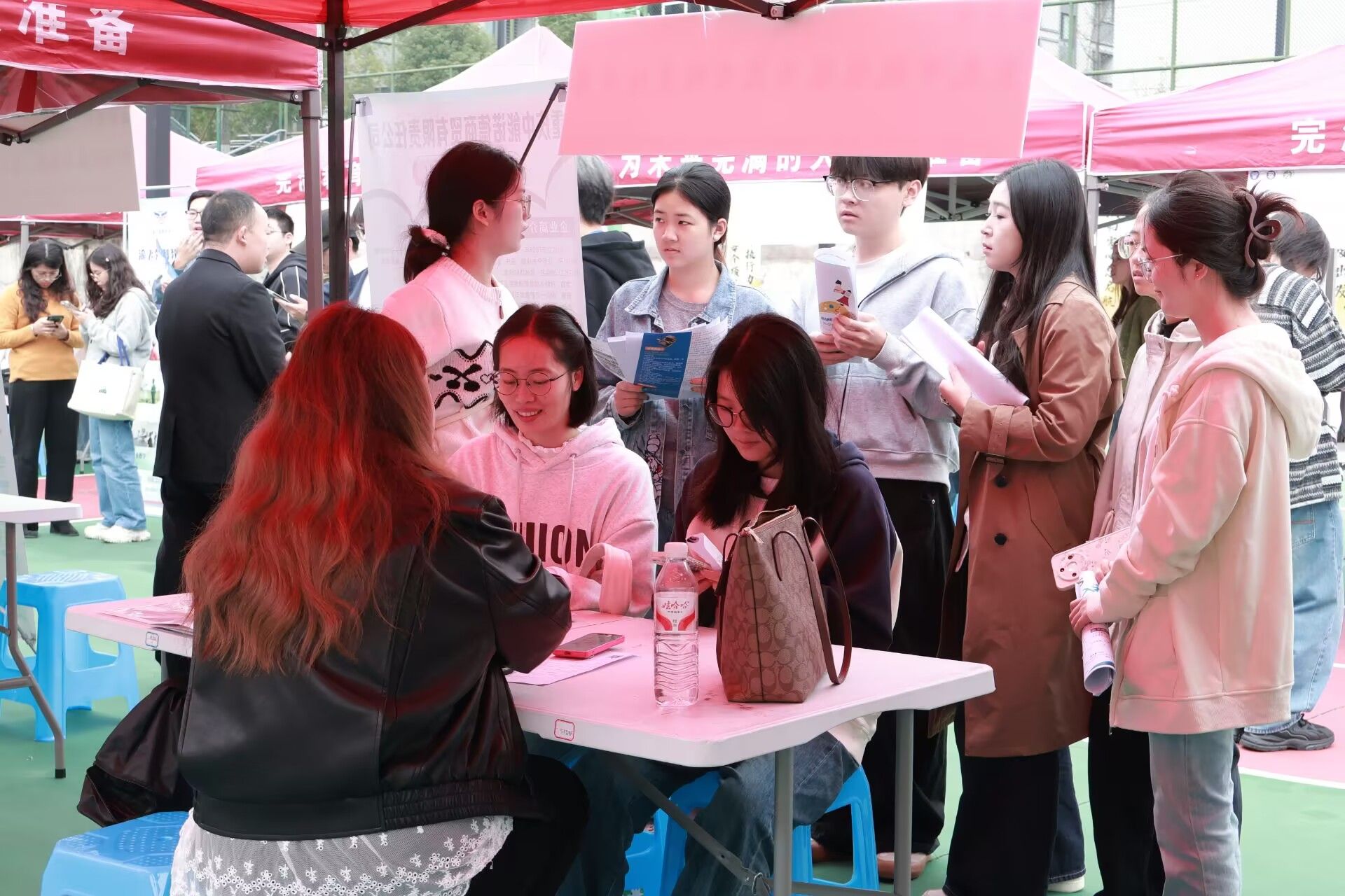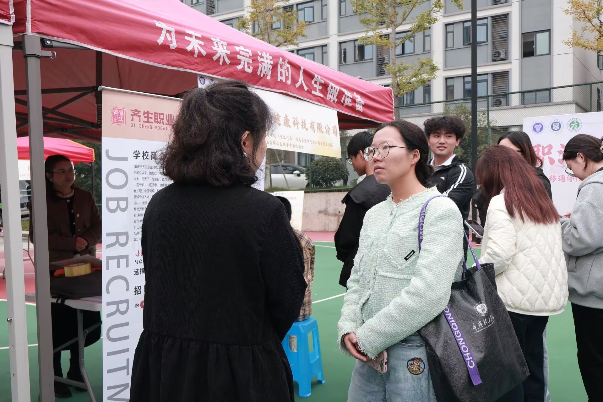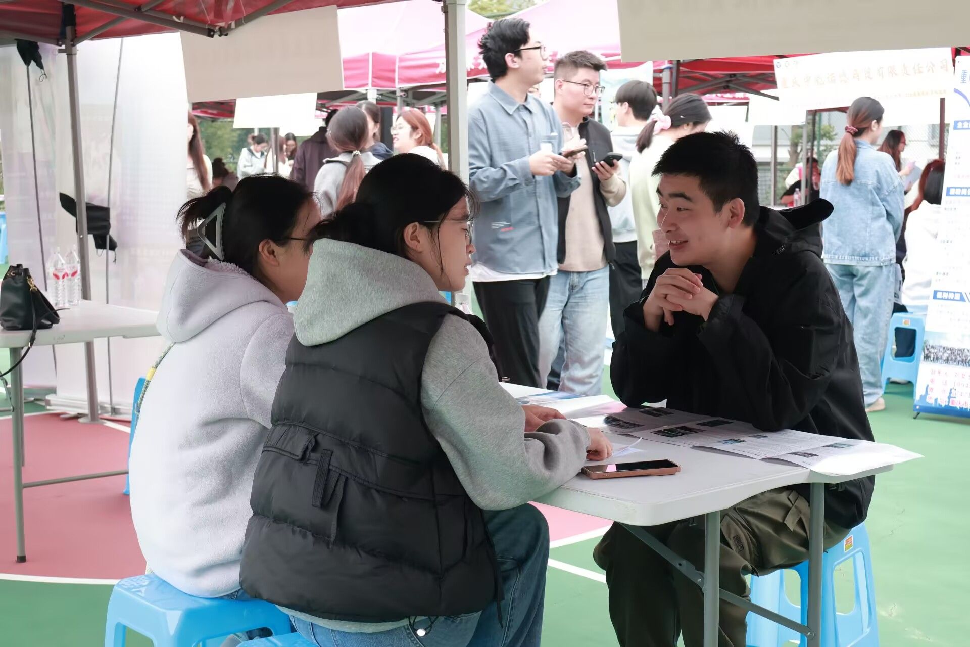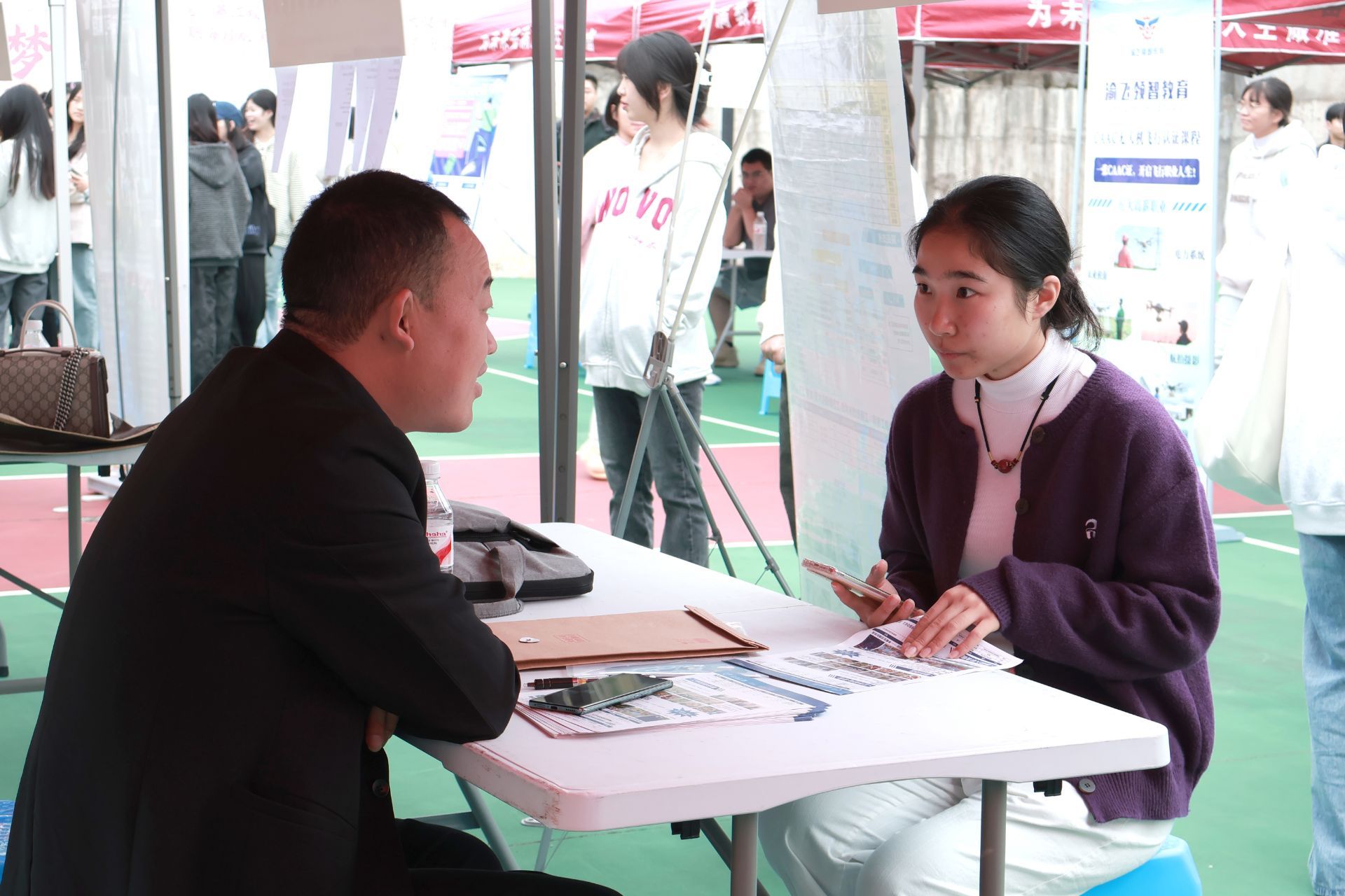 为搭建毕业生与用人单位高效对接平台,11月6日,由重庆移通学院信息安全学院与大健康管理学院联合主办的“职海启航·秋实筑梦”2026届毕业生秋季专场双选会,在瀛溪书院1号楼篮球场成功举行。