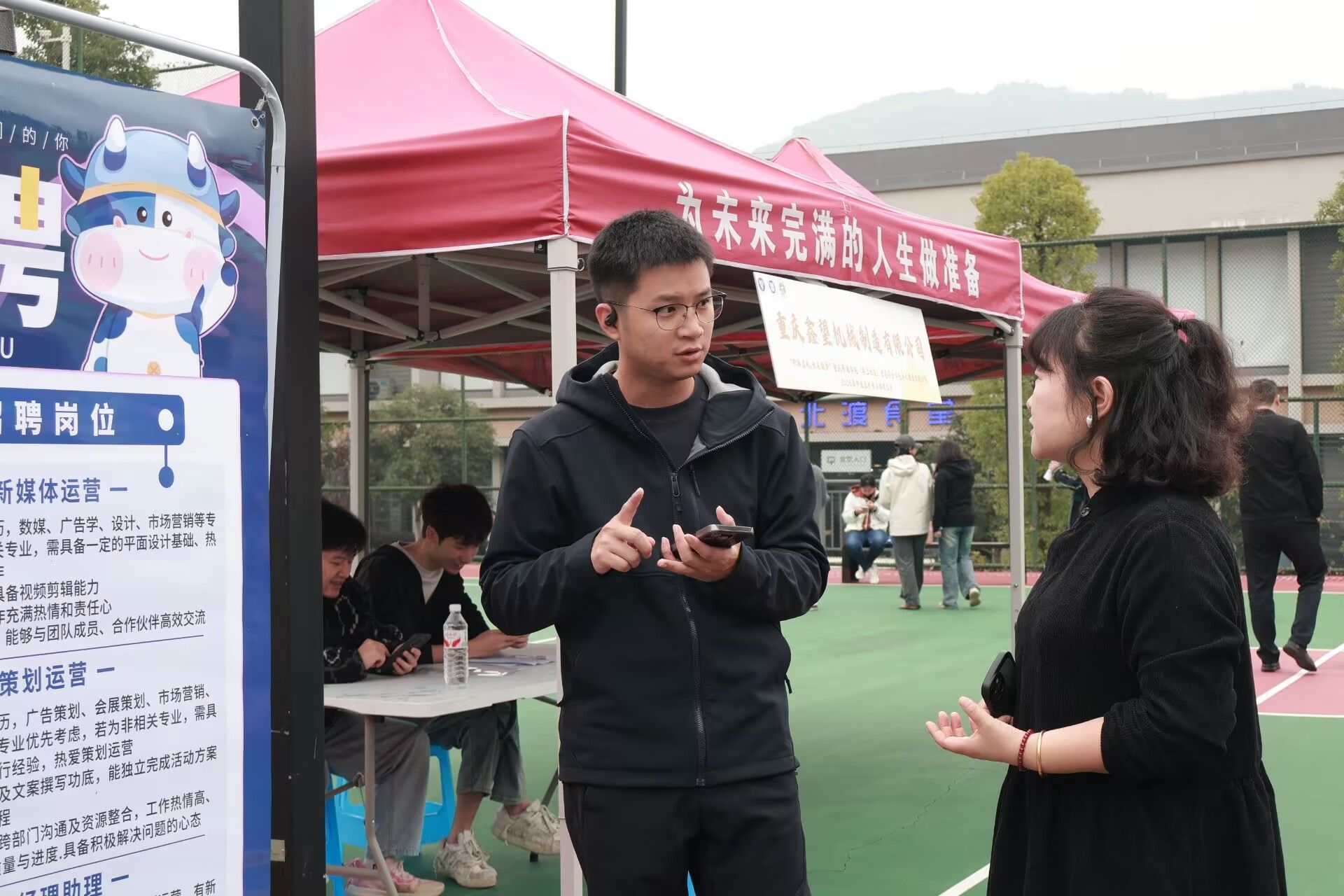 本次双选会覆盖健康管理、数字经济、文化传媒、信息技术等热门行业。受邀参会的重庆忆享科技有限公司、重庆中能诺德商贸有限公司、重庆福瑞齐生健康科技有限公司、中创新航新能源(厦门)有限公司等30家单位,提供了包括技术研发、健康管理、市场营销、运营策划、教育培训在内的数百个岗位,精准对接了两个学院毕业生的专业背景和求职需求,实现了人才供给与企业需求的“双向奔赴”。
