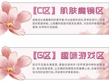 【G区】趣味游戏区:在精准套圈的游戏中,你拥有3次套圈机会,站在指定线外瞄准并套中“正确护肤方式”的瓶子即可通关,集【防】字章;在创意表达的游戏中,你可以选择绘制“我的肌肤心情卡”或完成“护肤心愿便利贴”来表达你对肌肤状态的感受或未来的护肤目标即可通关,集【心】字章。