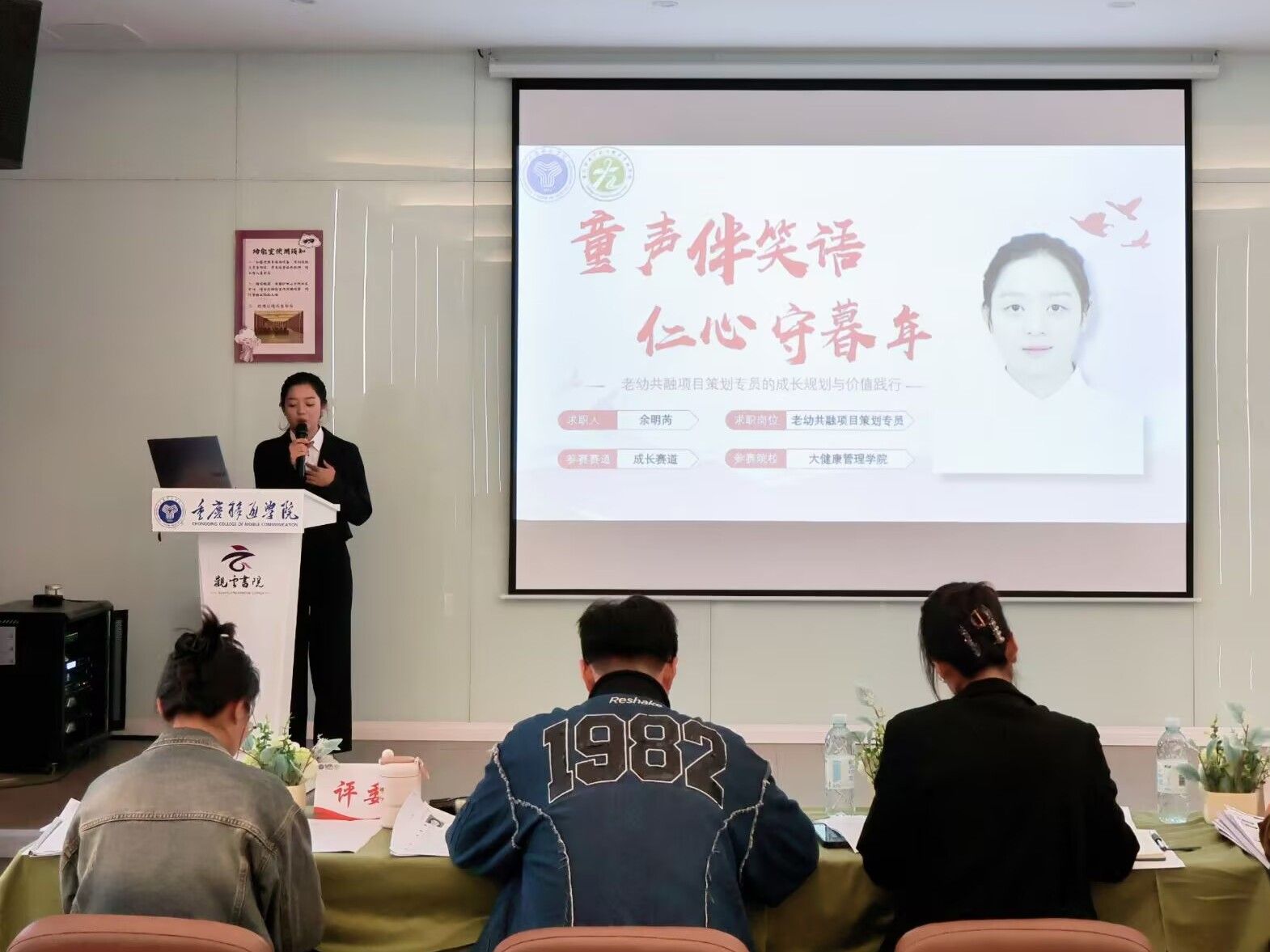 本次比赛特邀重庆市綦江区初级创业导师、就业创业库高级导师崔向灵;大健康管理学院就业创业工作办公室主任杨铭以及就业创业库导师廖炳屹、汪鑫、周江琴担任评委。