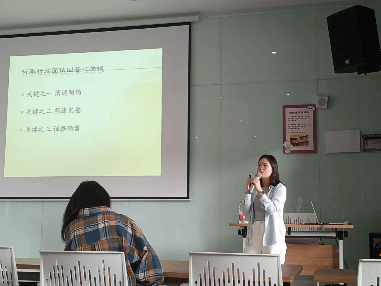 田老师以“树立就业意识”入题,为同学们讲解了面试中的常用技巧——行为面试技术。行为面试作为一种重要的面试方式,强调通过候选人对过去经历的具体描述,来评估其内在素质、工作能力和对岗位的适应性。培训中,田老师首先介绍了行为面试技术的基本概念,强调其对于判断候选人是否胜任某一岗位的重要性。