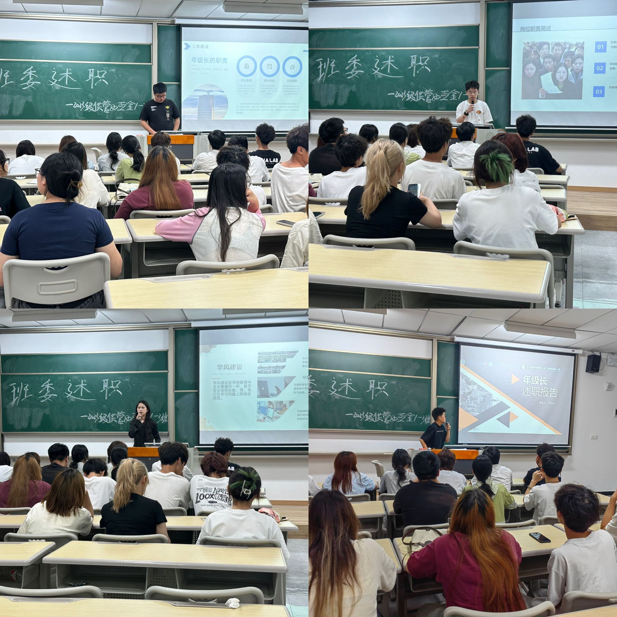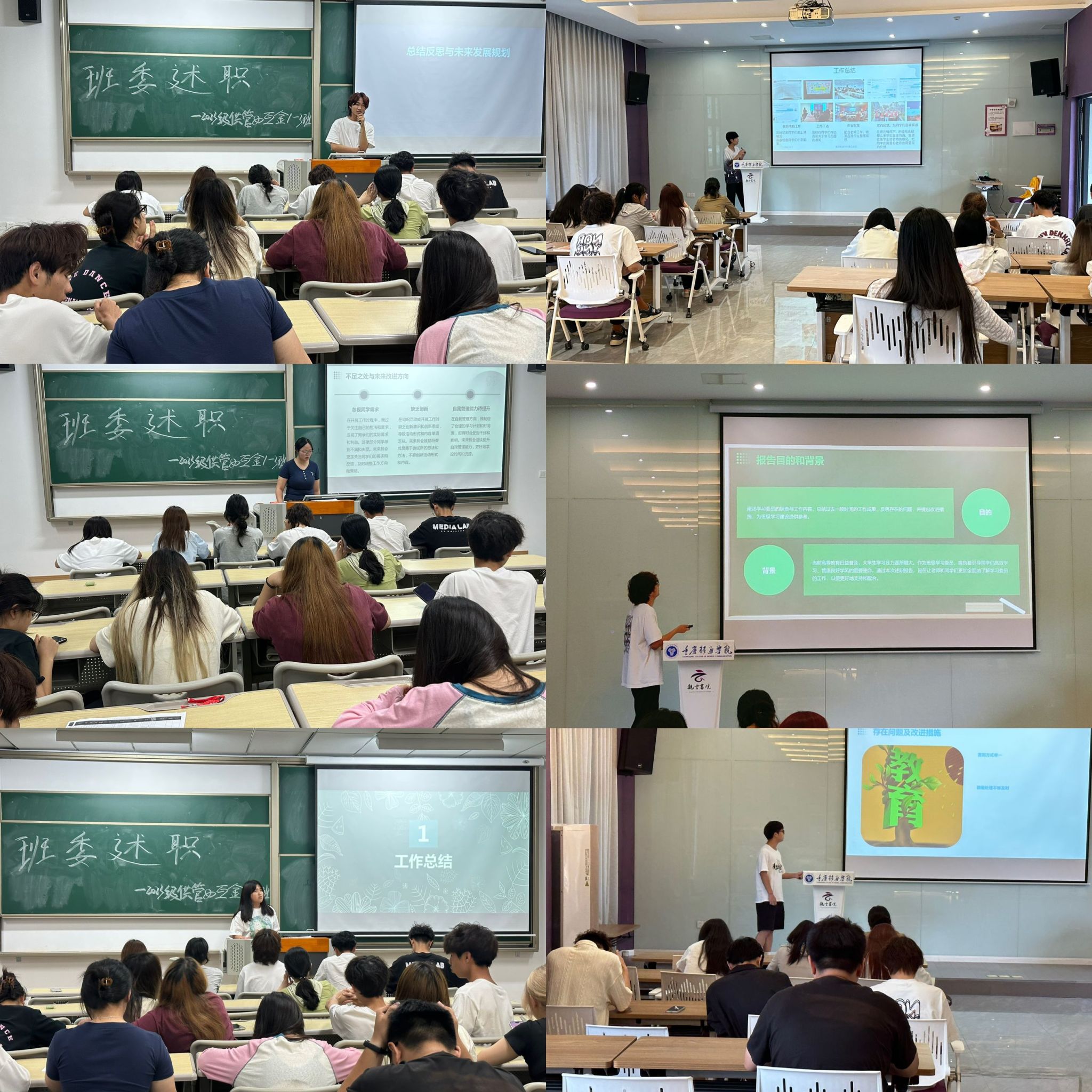 本次年级长、班委述职会,年级长和各班委依次对本学年工作做了详细的总结,介绍了工作中的成绩与收获,讲述了工作中遇到的问题及不足。四位年级长从专业整体角度介绍自己在年级工作的成绩和不足,提出未来发展的方向和目标。年级长提出,未来大家将齐心协力加强团队建设,增进与班委之间的合作和信任,提升团队的执行力和凝聚力,同时保持创新思维,不断尝试新的工作方式和方法,为年级带来更多的惊喜和成就。各班班长作为班级的领头人,从班风建设、学风建设、党团建设、个人发展、心得体会等方面总结了过去一年的工作,他们表示,在过去的一学期里,班级取得了不错的成绩,但也存在一些不足之处,未来将不断加强班级内部管理和团队建设,提升了组织的执行力和协作能力,把班级打造成一个团结、积极向上的班集体。各班团支书回顾了过去一年的团支部工作内容和成果,总结取得的经验和教训,通过举实例、列数据、展图文等方式,围绕青年思想引领、团日活动开展、基层团组织建设、团员成长等方面,汇报本学期工作落实情况和工作成效。同时针对本学期工作的不足和团支部工作面临的难题,做出自我反思、提出相关建议并对团支部未来的工作做进一步展望和规划。