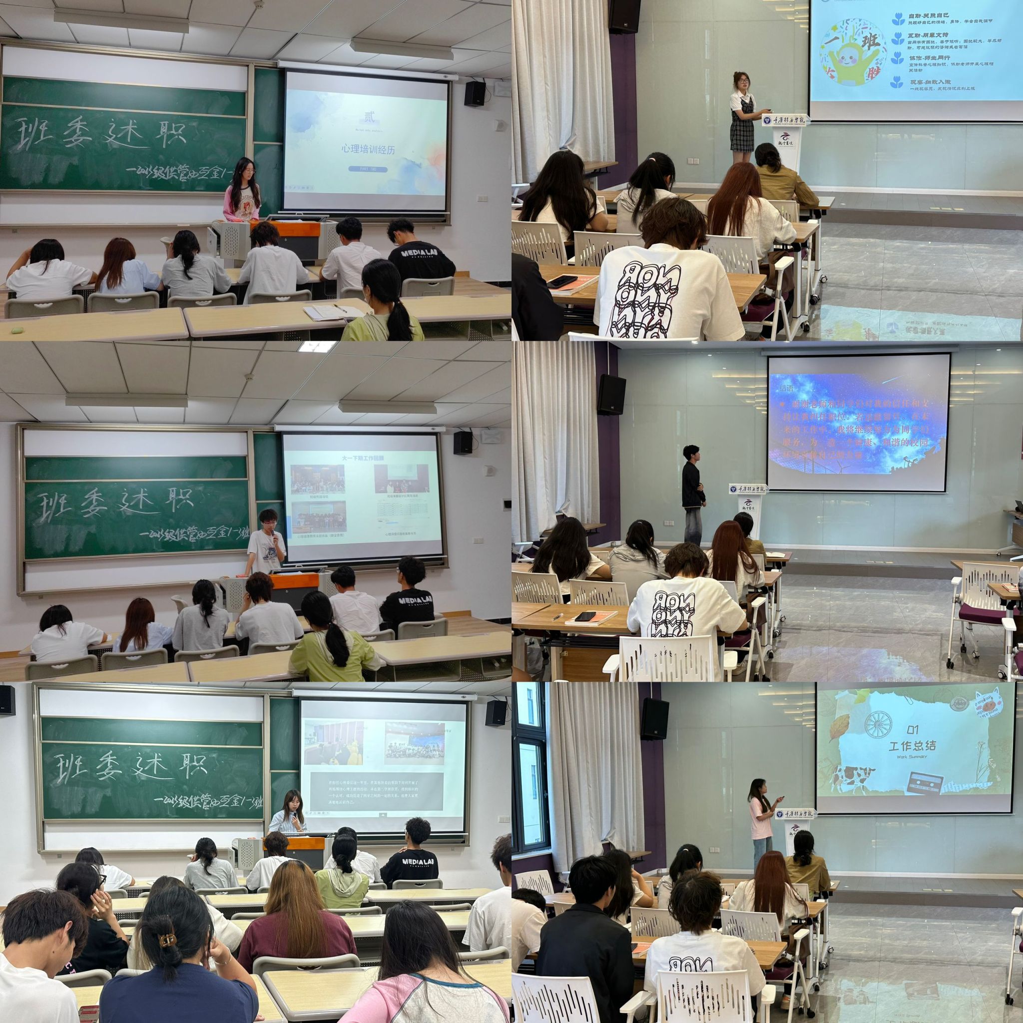 各班学习委员汇报本学年班级开展多种形式的学习活动,如主题讲座、学习分享、学习小组等,通过趣味学习活动提高了同学们的学习积极性和主动性。同时,各班学习委员还积极开展早自习,提高了同学们学习热情度。各班组宣委员回顾了各项活动的开展情况并进行了总结,在这一年的工作中,他们协助班级其他班委工作,确保班级工作顺利进行,撰写活动新闻稿、早自习简讯,成功营造了积极向上的校园氛围,提高了同学们参与校园文化活动的热情。各班文体委员在本学年工作中他们负责策划、组织和推动学校的文化艺术和体育活动,为学校的艺术文化和体育活动增添了活力,丰富了同学们的校园生活,促进了学校文化建设和学生全面发展。各班心理委员的工作对同学们的心理健康起着重要的促进作用,帮助他们更好地适应学校生活、克服困难,保持心理平衡和健康。他们是校园心理健康服务体系不可或缺的一部分,为学校的教育教学工作和学生成长发挥着积极的作用。
