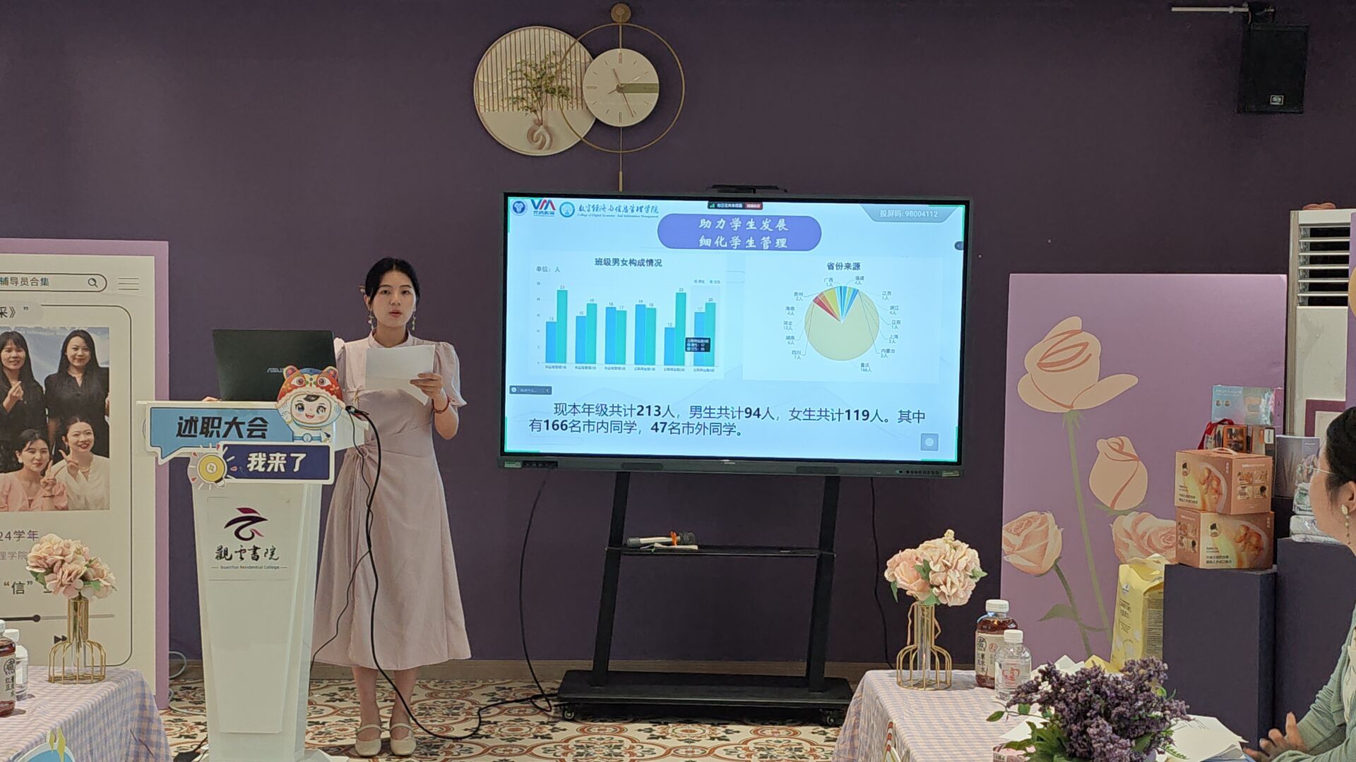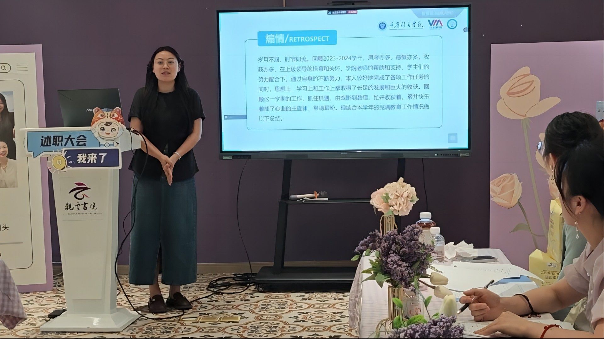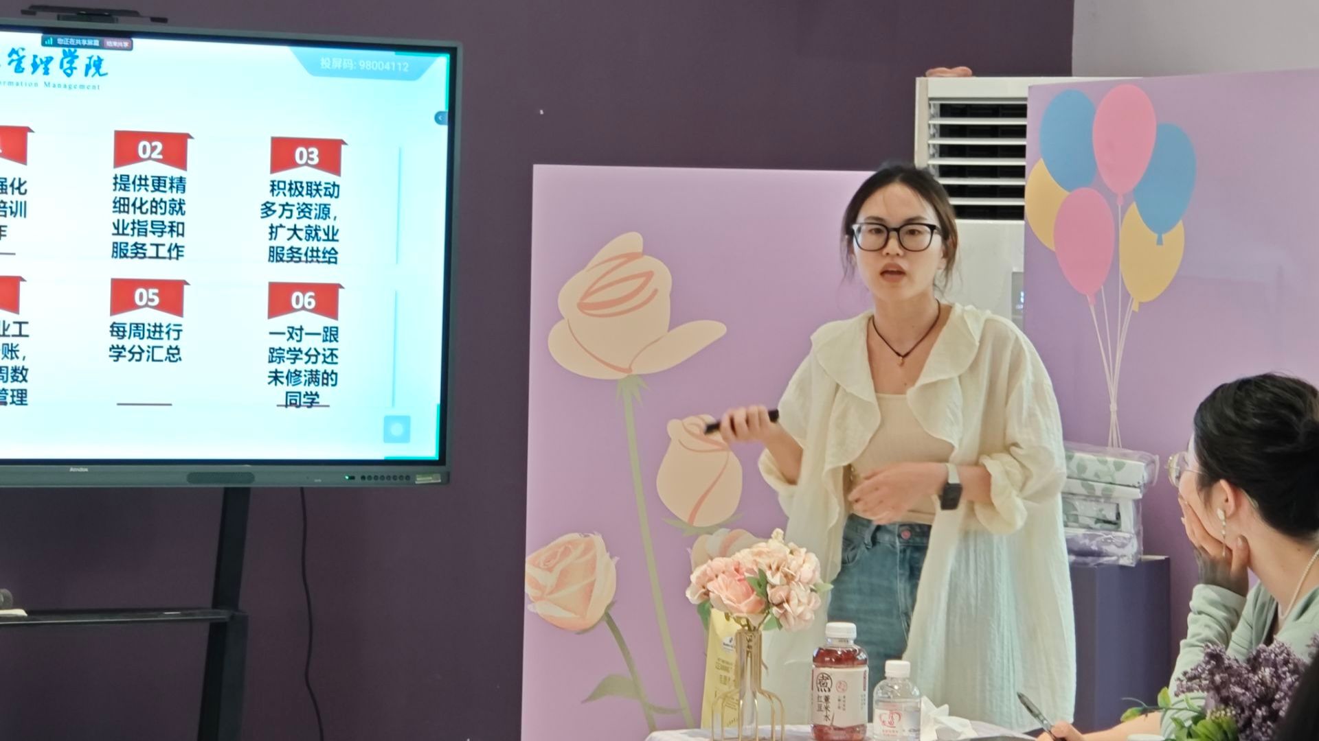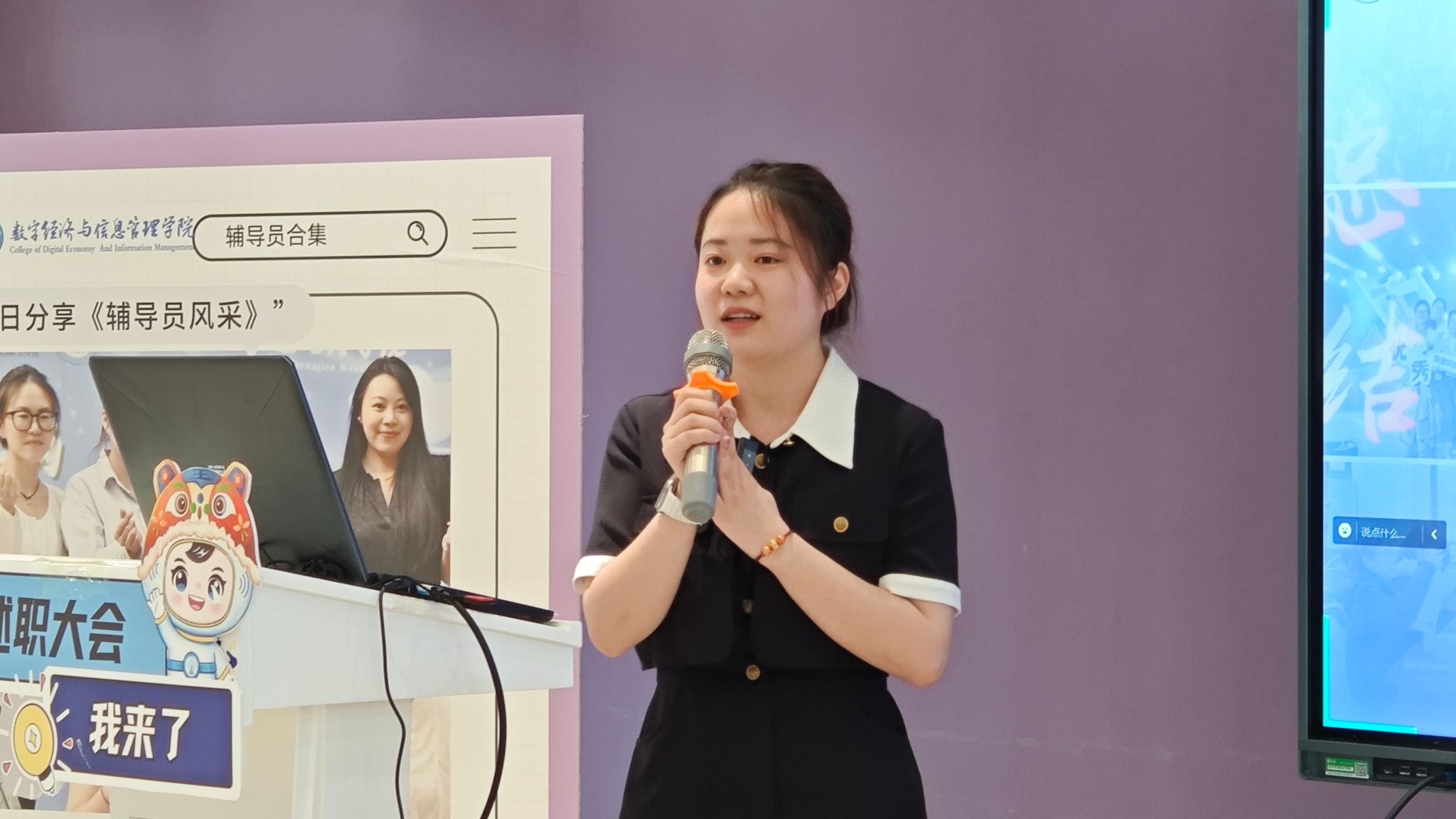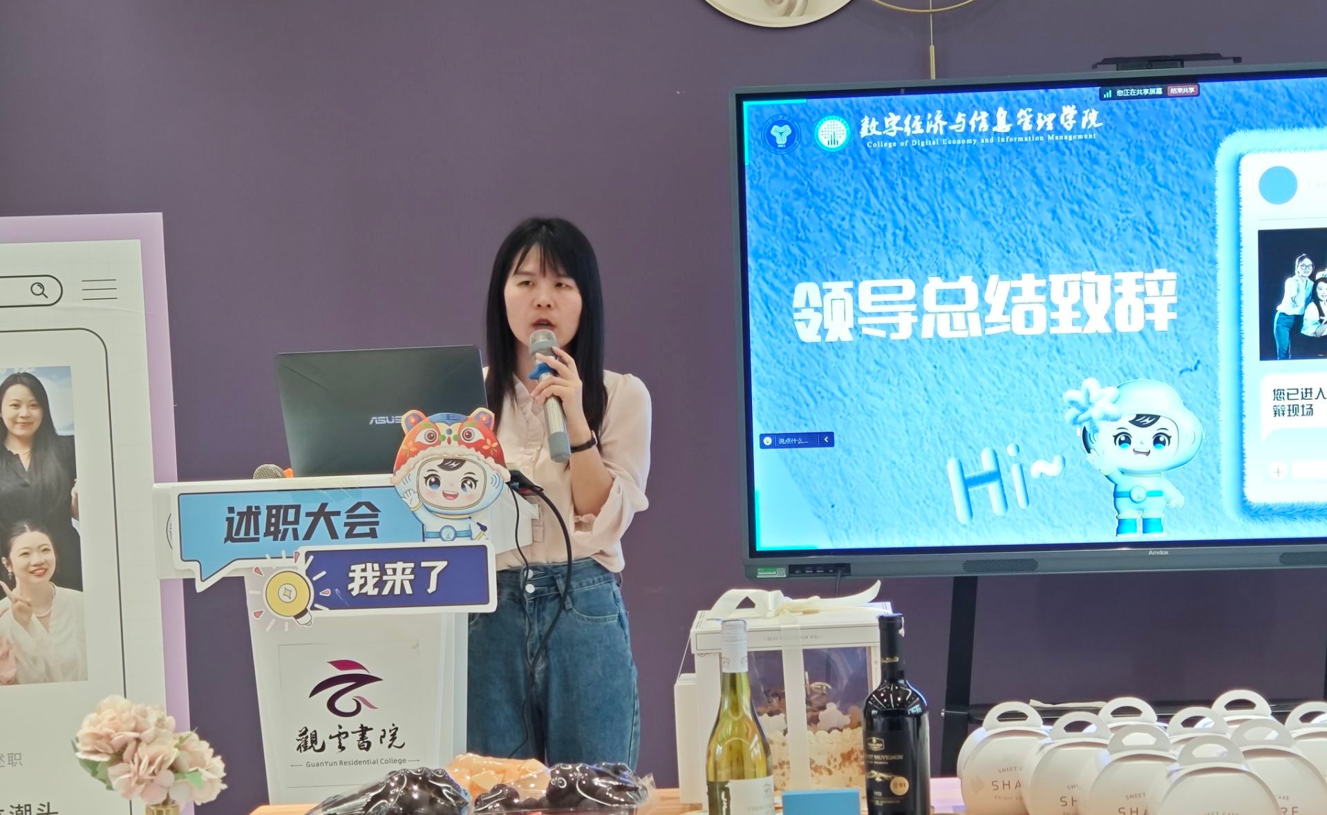 各位辅导员老师展示结束后,任瑞娟副院长发表了致辞。她对我院辅导员过去一年的辛苦付出和所获得的成绩表示了充分的赞扬与肯定,也为辅导员们能力水平的提高、政治素养的提升、处理问题方式的改进表示深深的欣慰。同时也针对每位辅导员在工作中的不足进行批评指正,并给出合理的建议。任瑞娟副院长对我院辅导员老师寄予了殷切期望,希望老师们能够不负所期,带领数字经济与信息管理学院不断超越自我,勇往直前。