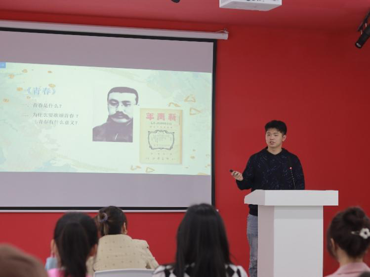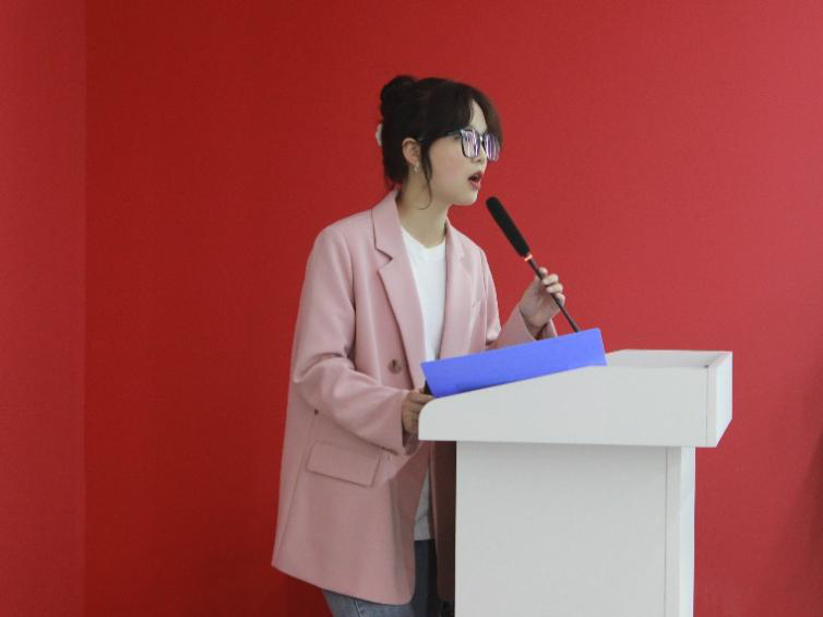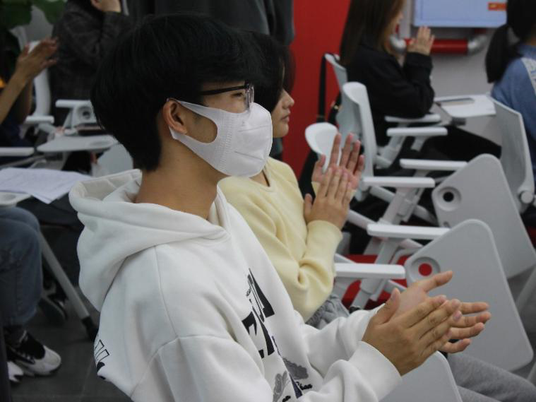 晁季瑞同学以天才少女谷爱凌为例,铿锵有力地提出“青春正当时,一起向未来”!他以饱满的热情、激昂的斗志将现场气氛推向高潮,在评委和观众热烈的鼓掌声中,展现出数字经济与信息管理学院学生作为新时代大学生的责任与担当!