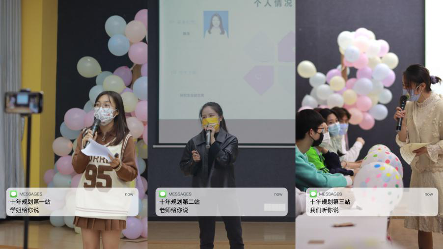 航班到达第一站:“recall”自己。同学们在卡片上留下对十年后的期待,互联网金融三班的袁伟程同学与大家分享自己准备入伍参军保家卫国的军人梦,许多同学想成为行业领域中事业有成的精英白领。梦想刻在奋斗的坐标上,携手出发,承载着同学们的希望,不忘初心,努力奋斗,在人生的路途上眼眸有星辰,心中有山海,以梦为马,不负韶华!