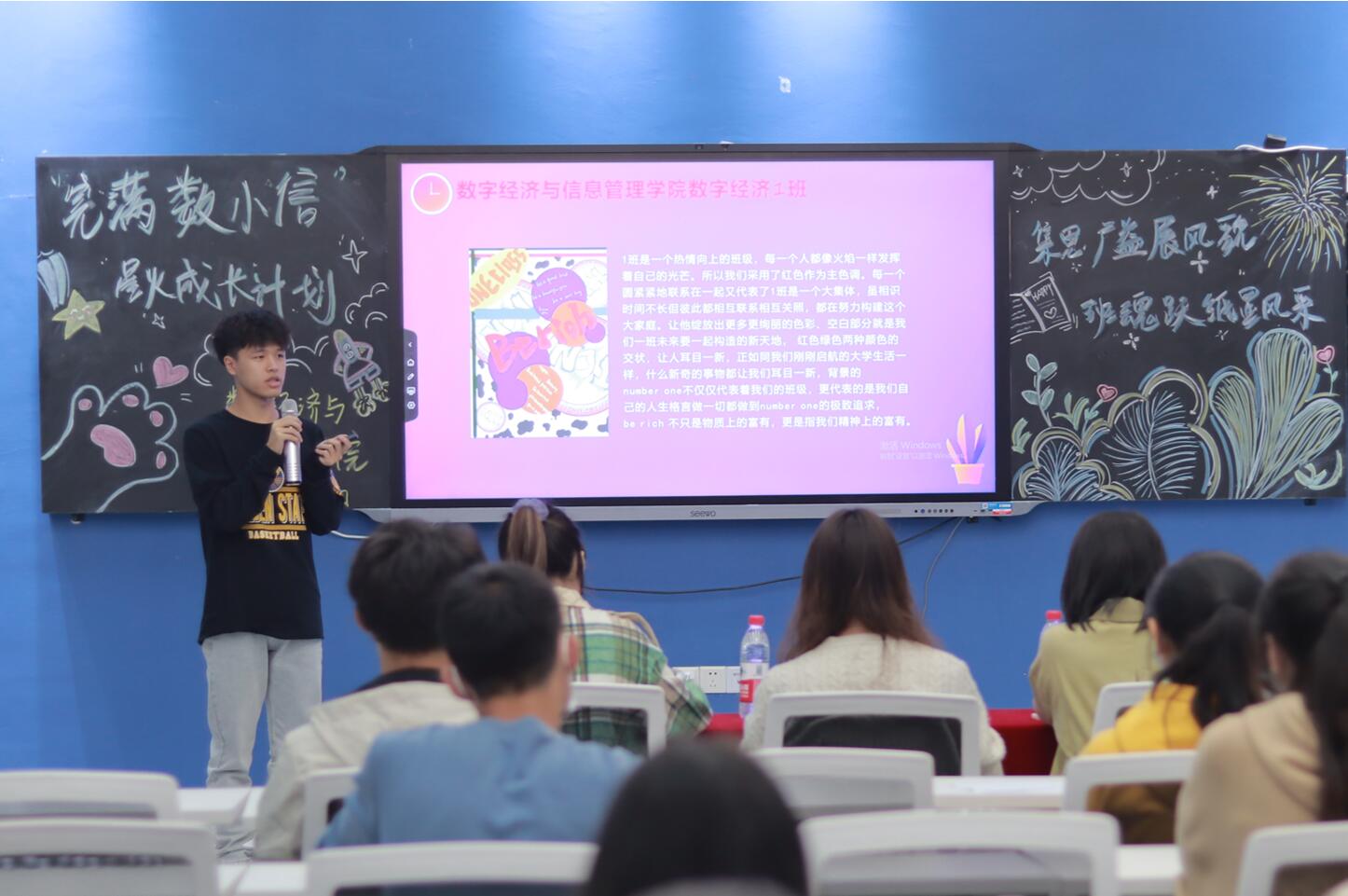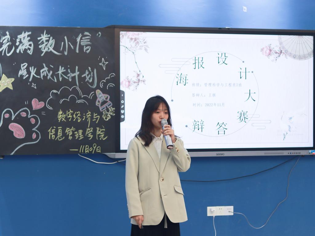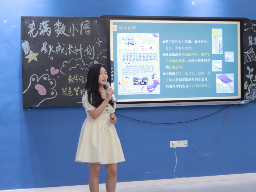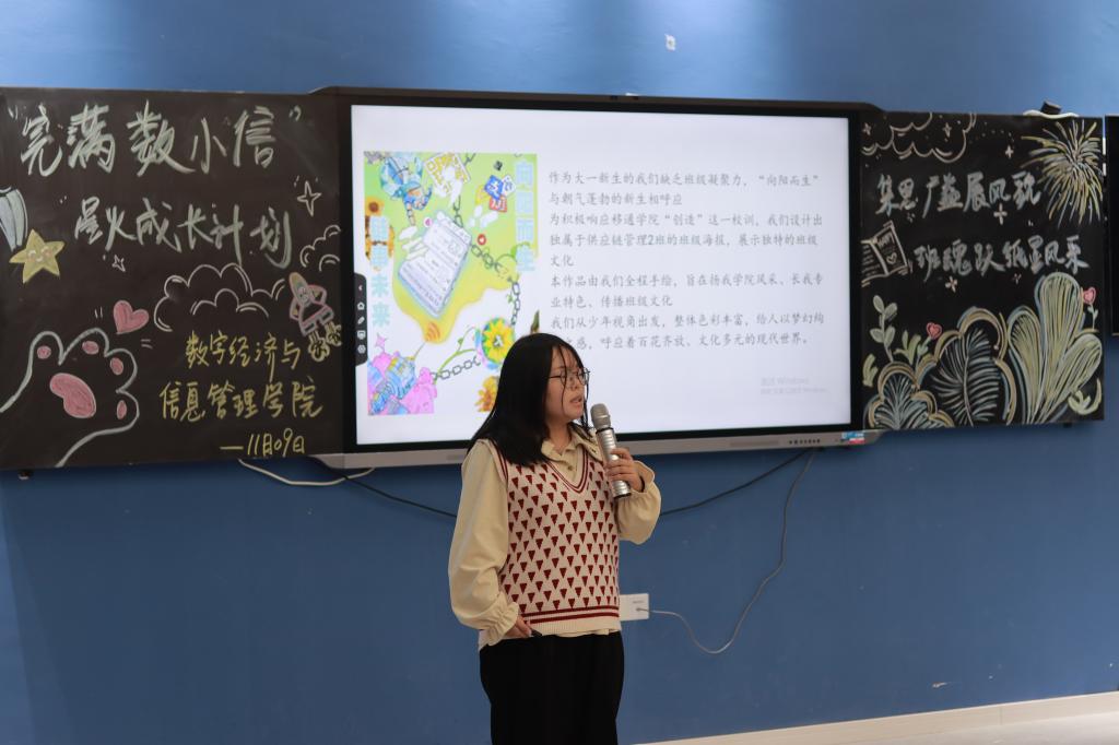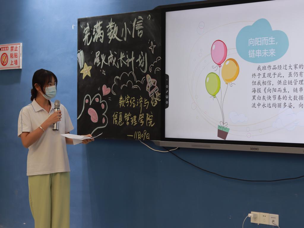 “綦”思妙想,绘出想象;一起畅想,共同成长。为更好地促进班风建设,营造积极向上的班级氛围,数字经济与信息管理学院“‘完满数小信’星火成长计划”举办了本次班级文化海报设计大赛。经过前期初赛评选,共有十一个班级崭露头角,参与线上“移通数小信”微信公众号投票并加入决赛答辩。