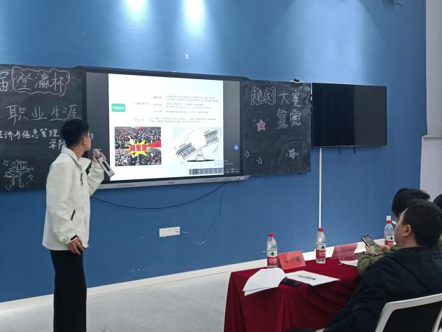 在比赛中,各位参赛者上台展示自己的特色规划,结合ppt,从自我认知、社会环境出发,用各种分析法来在就职竞争中分析自己的优势和劣势,并就提前做好的职业规划,为自己的未来发展定好位置,优化就业途径。在老师的帮助下,对自己的学习,工作,生活进行了重新的规划理解,并对自己的成长,学校发展和社会进步的方面都有一些重要的展望。参赛选手们大多采用swot分析法,用醒目字体加图案提升作品观赏性,清晰明了的构图配合上自信的解说产生了事半功倍的效果,既提升作品吸引力,也展现选手独特的鲜明设计思维。