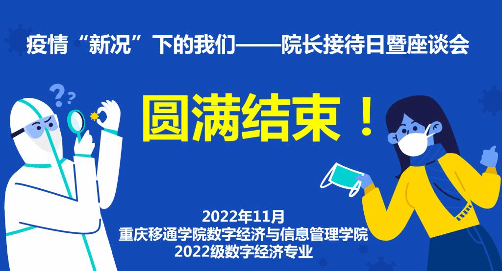 疫情发生以来,同学们的学习和生活受到很大影响,加之疫情发展不确定性,给大家带来了心理上的焦虑和挫折感——这些,重庆移通学院数字经济与信息管理学院的领导和老师们感同身受。为更有效应对疫情新的发展态势下移通学子各方面问题,加强院领导、老师与同学们之间的沟通交流,数字经济与信息管理学院于2022年11月30日上午10点在云端召开“疫情新况下的我们”11月线上院长接待日暨座谈会。