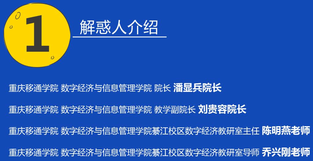 本次座谈会有幸邀请到数字经济与信息管理学院院长潘显兵教授、教学副院长刘贵容教授、数字经济教研室主任陈明燕老师和数字经济教研室导师乔兴刚老师作为特邀嘉宾,为大家传递信息、释疑解惑、反馈需求。参与本次对话的还有綦江校区2022级数字经济专业1-6班百余名学生,本场座谈会由2022级数字经济专业辅导员韩玉老师主持。