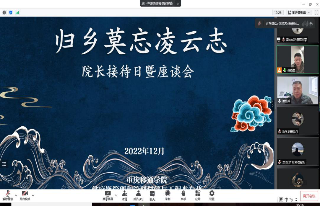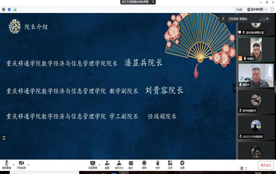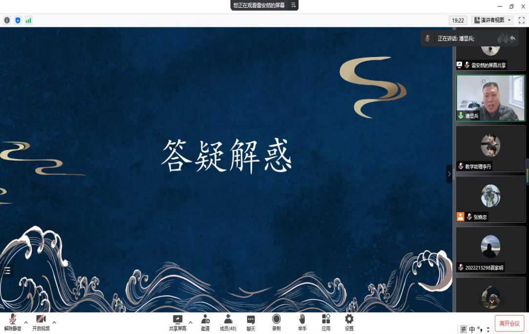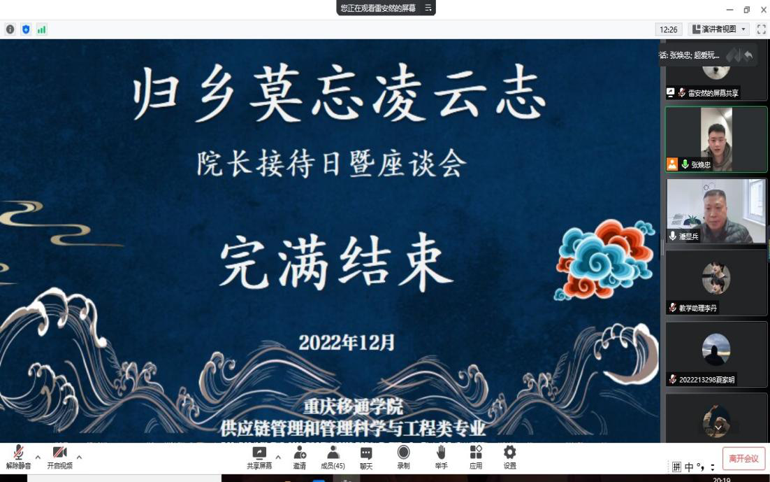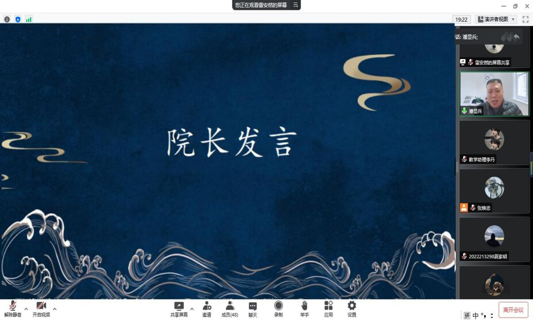 会议开始,院长潘显兵表示这学期很不容易,不过大家都坚持下来了,同学们陆续返乡,但返乡不等于放假,网课正在全面开展;本次会议旨在为同学们答疑解惑,不论是学习、生活还是其他方面的问题,我们都可以交流、畅谈,或者有什么意见、建议需要反映,都可以通过这个平台交流。