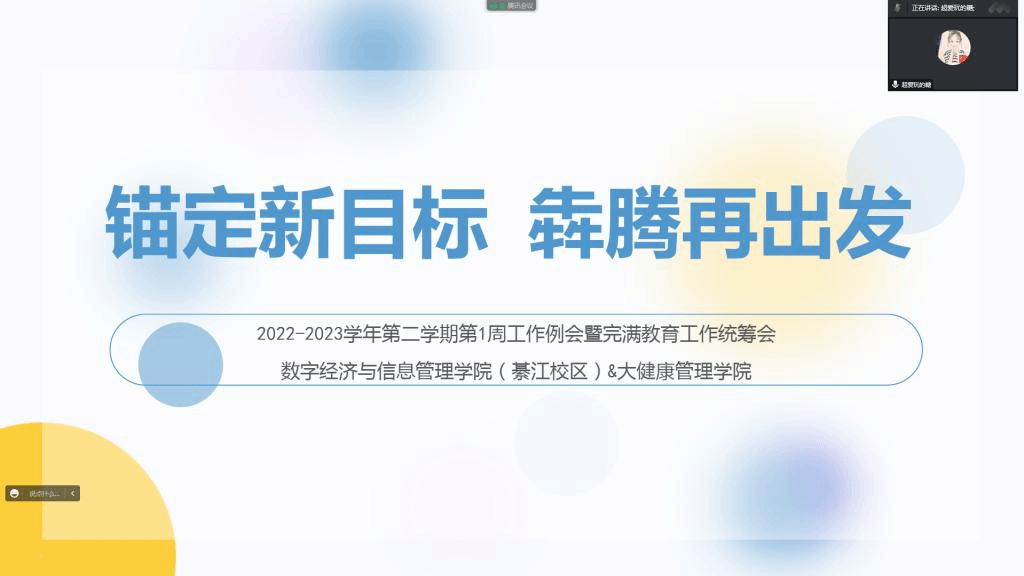 2023年2月23日16时,重庆移通学院数字经济与信息管理学院(綦江校区)&大健康管理学院2022-2023学年第二学期第1周工作例会暨完满教育工作统筹会在云端召开,学工副院长任瑞娟和两院全体辅导员参加会议,会议由学工办主任尹金维主持。