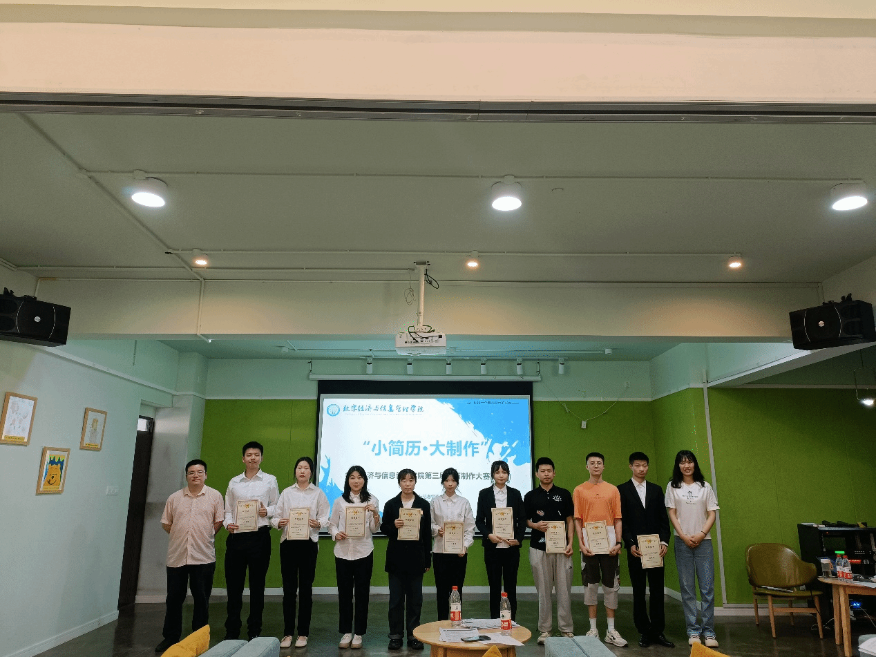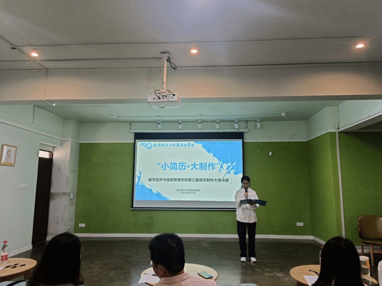 点亮职业生涯,强化简历制作。为进一步帮助学生了解职场面试形势,提高简历制作能力,获得更多就业机会。我院于2023年4月19日12:30在双栀多功能影音室开展数字经济与信息管理学院“小简历·大制作”第三届简历制作大赛。此次比赛有幸邀请到数字经济与信息管理学院副院长任瑞娟老师,学工办主任廖阳老师,就创办公室主任张婷老师,就创版块指导老师张雪老师,校园社团板块指导老师刘琳老师、吴丽玉老师,竞技体育板块指导老师吴生亮老师,艺术修养与实践版块指导老师陈西老师。