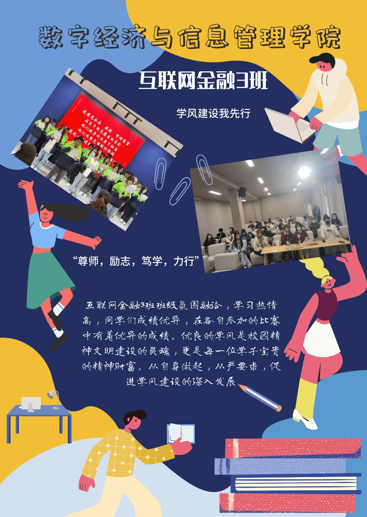 为坚持不懈培育优良学风,全面推进、建设和巩固优良学风长效机制,努力开创学风建设新局面,数字经济与信息管理学院2022级互联网金融1-4班和管理工程与科学类6-7班在2023年5月开展“燃学风之“火”,追榜样之“光””榜样宣传活动。