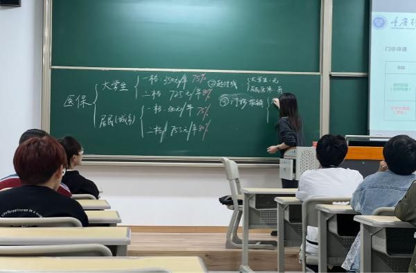随后,各班级辅导员从“门诊报销”和“住院报销”两个方面向同学们介绍大学生医保的报销力度,同时将居民医保与大学生医保的报销力度进行了对比,进一步让同学们认识到大学生医保的优惠力度以及国家对大学生的照顾。