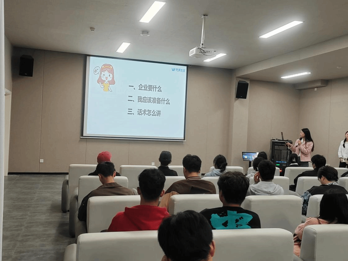 11月3日14:00-17:00童学容老师与阙小梅老师分别为同学们进行“面试技巧”与“职场礼仪,求职渠道”主题培训。童学容老师根据面试情景为同学们讲解如何游刃有余的应对面试,帮助学生在面试时展现应聘者成熟专业的气质,以及在各种突发情况的应对反应,增加自身优势,端正学生求职心态,提高学生的求职素质和技巧,实现学生高质量就业。