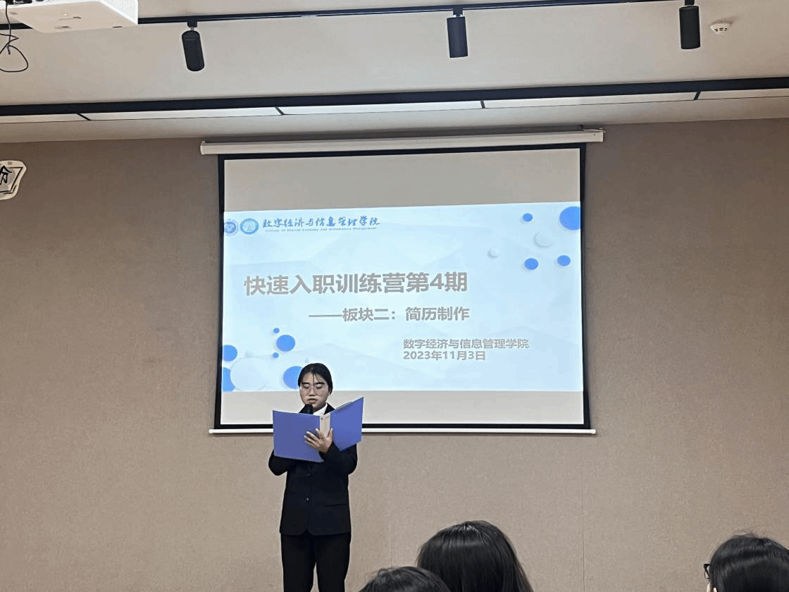 随着社会的发展和就业形势的快速变化,为帮助学生更好地适应就业市场,提高就业竞争力,促进其成长及全面发展,我院于2023年11月2日至11月3日开展了“快速入职训练营第4期”系列讲座。本次活动有幸邀请到了就业创业导师库导师郭淼老师、周俊老师、童学容老师与阙小梅老师为同学们进行培训。四位老师针对入职就业主题帮助学生做好求职准备,让其充分了解自身优势,提升就业竞争力和个人职业素质。