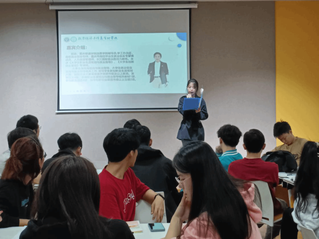阙小梅老师为大家进行“职场礼仪,求职渠道”的求职技能指导,分享职场必修课,开启同学们精彩的职业生涯。从职业形象、商务礼仪、社交礼仪方面为大家详细的讲述在职场上的得体表现。以无领导小组讨论的形式进行职场模拟实践,让同学们积极讨论,相互借鉴,在实践中收获成长。