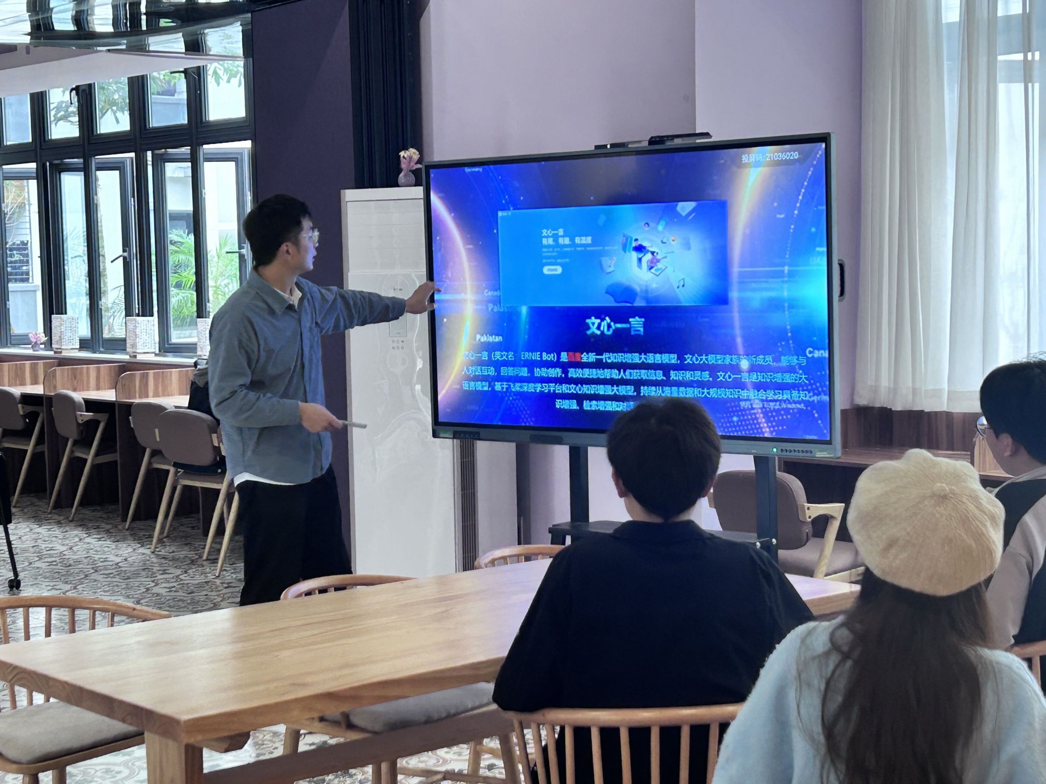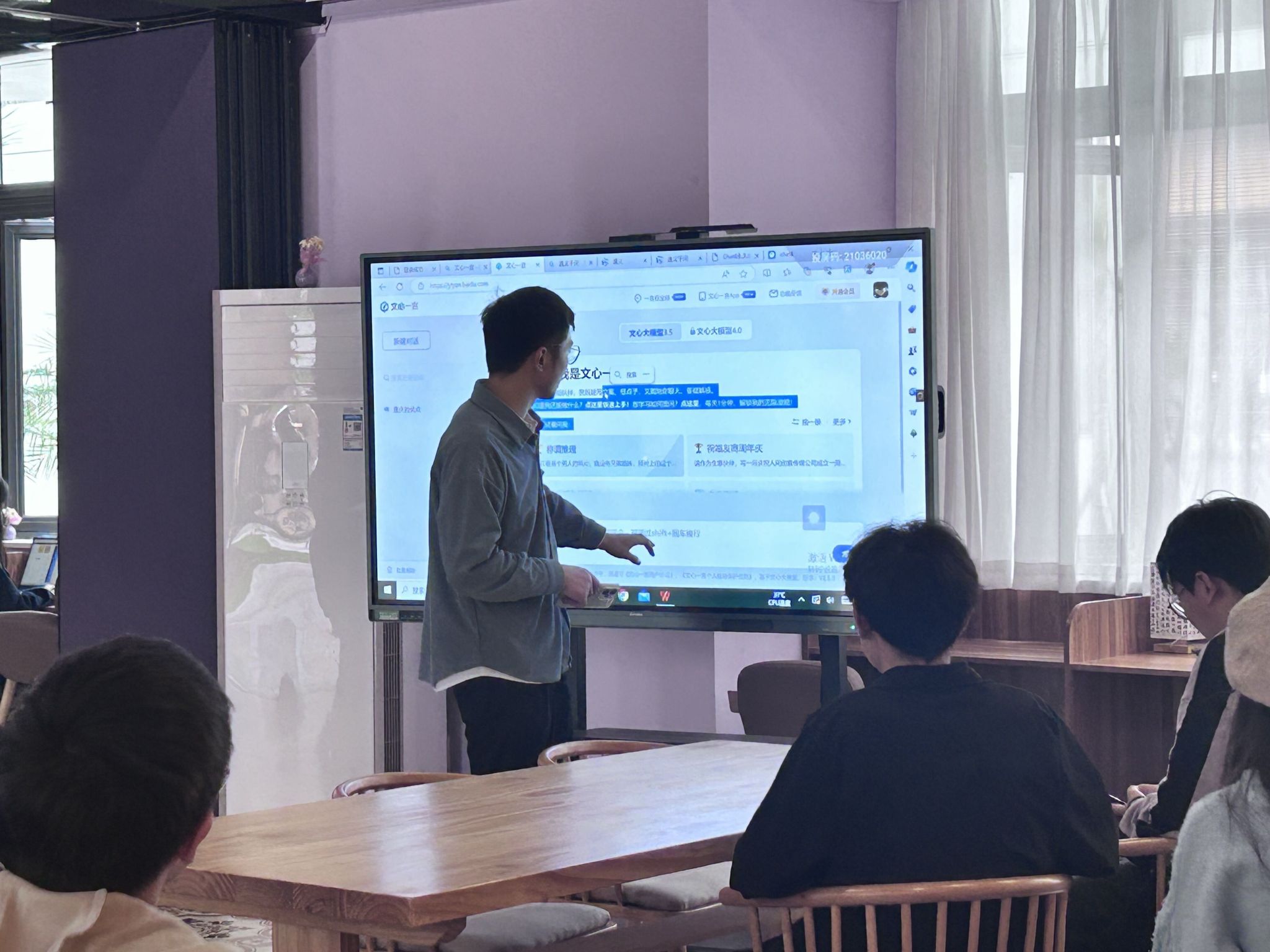 随着人工智能的发展,人工智能相关应用逐渐进入我们生活中。异科导师李修元为2023级互联网金融1-2班学生举行了一场关于AI的培训和体验交流会。异科导师李修元结合异科融合的特点出发,增加学生对计算机发展的了解和认识。以当下比较流行的AI聊天机器人进行切入,从国外的ChatGPT讲到国内的文心一言、通义千问、智谱清言等。为了让学生体验到AI聊天机器人的相关功能,给学生们带来不一样的体验,李修元导师小组成员于2023年11月9日中午在观云书院芒种-华文书吧开展了一场以“认识AI,体验AI聊天机器人”为主题的培训交流会。交流会由异科导师李修元主持,2023级互联网金融1-2班学生参加。