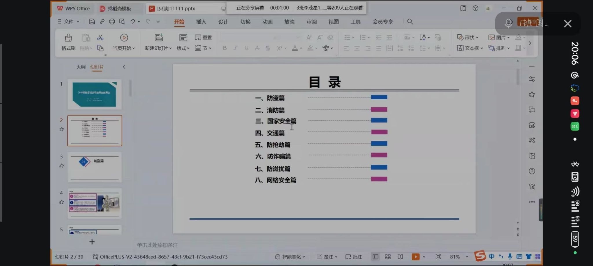 本次安全教育杨老师从消防安全、交通安全、防诈骗安全等多个方面的安全知识进行了解读,并且为大家制定了全面的安全教育计划,希望能从多方面提高大家的安全意识和应对突发情况的能力。