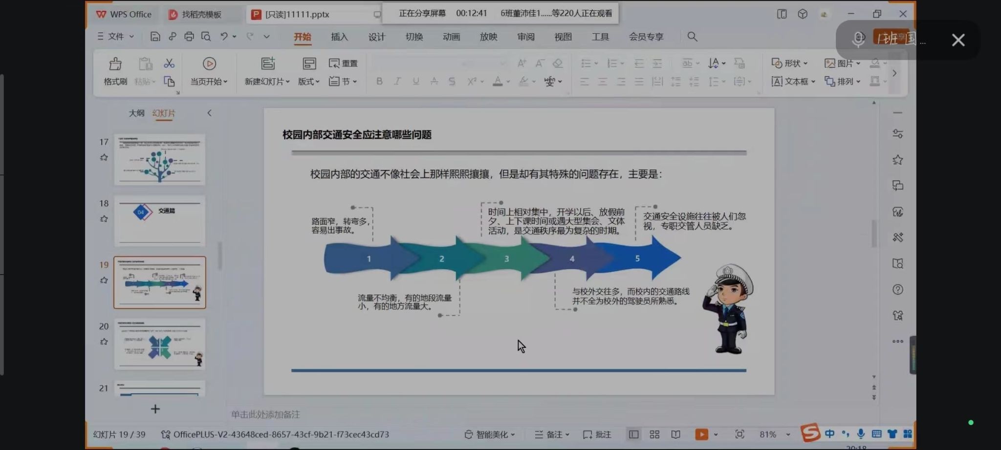 杨老师以校园交通安全事故为例,为同学们传授了安全出行的知识和技巧,讲解了交通法规和交通事故的原因,希望同学们以此为例时刻提醒自己注意交通安全,提高自我保护能力。