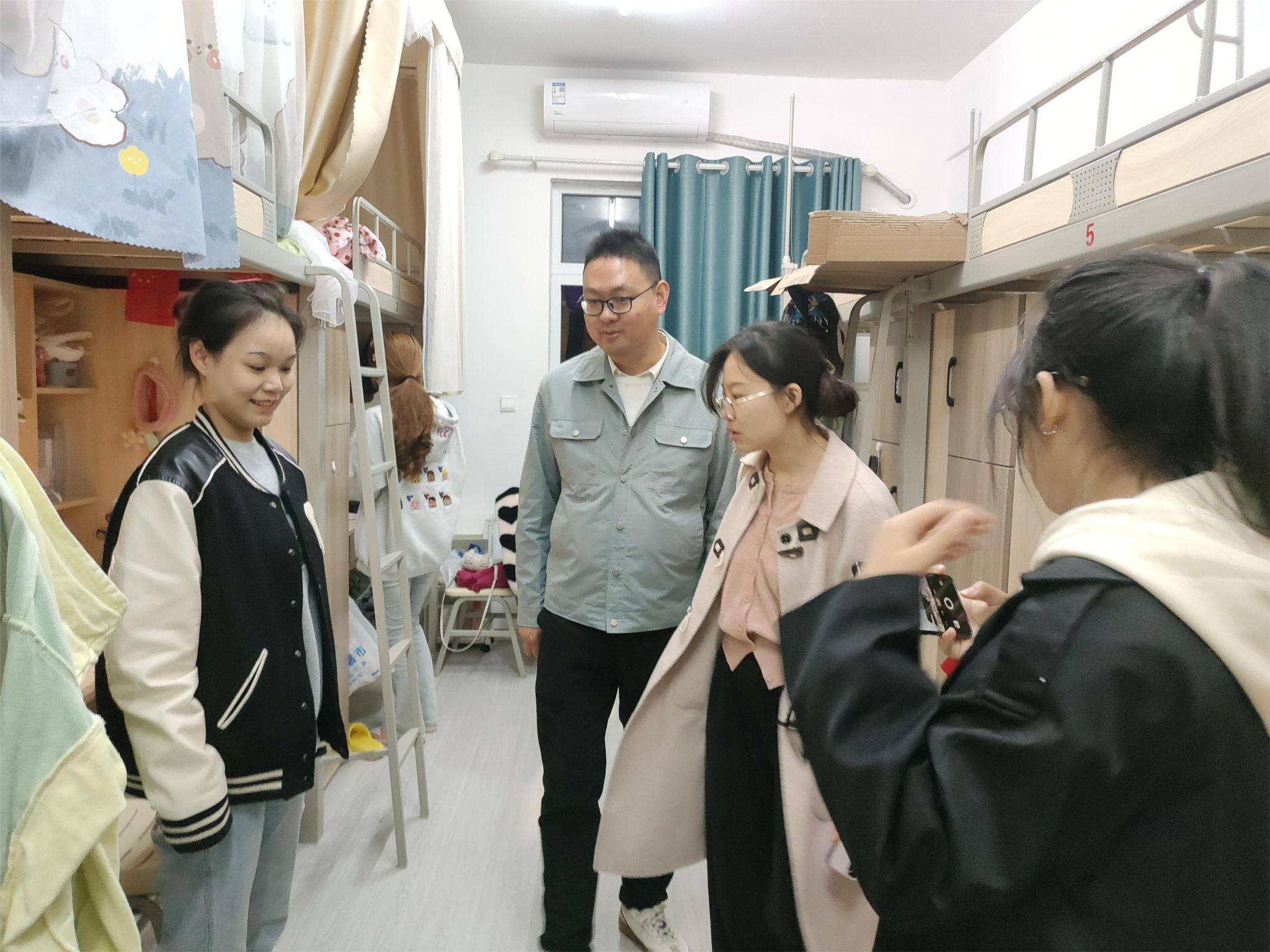 户庭无尘杂,虚室有余闲。宿舍是学生身心休憩的港湾,记录着我们生活的点滴,寝室成员的生活习惯影响着每个人的生活方式、学习态度、行为规范、价值理念以及理想信念。为进一步加强学生宿舍安全卫生教育及管理,消除安全隐患,创建安全、整洁、文明的生活环境,2023年11月22日晚19时,由数字经济与信息管理学院团总支书记潘锐老师、学工办主任任超群老师,2022级辅导员王健老师、田园园老师,2023级辅导员杨必菊老师、张静老师、周静老师、陈燕华老师带领权益女生部干部干事于观云书院、古剑书院、瀛溪书院、横山书院、綦河书院开展了“‘寓’见美好,‘宿’说青春”为主题的联合大查寝活动。检查范围包括我院22级、23级宿舍。