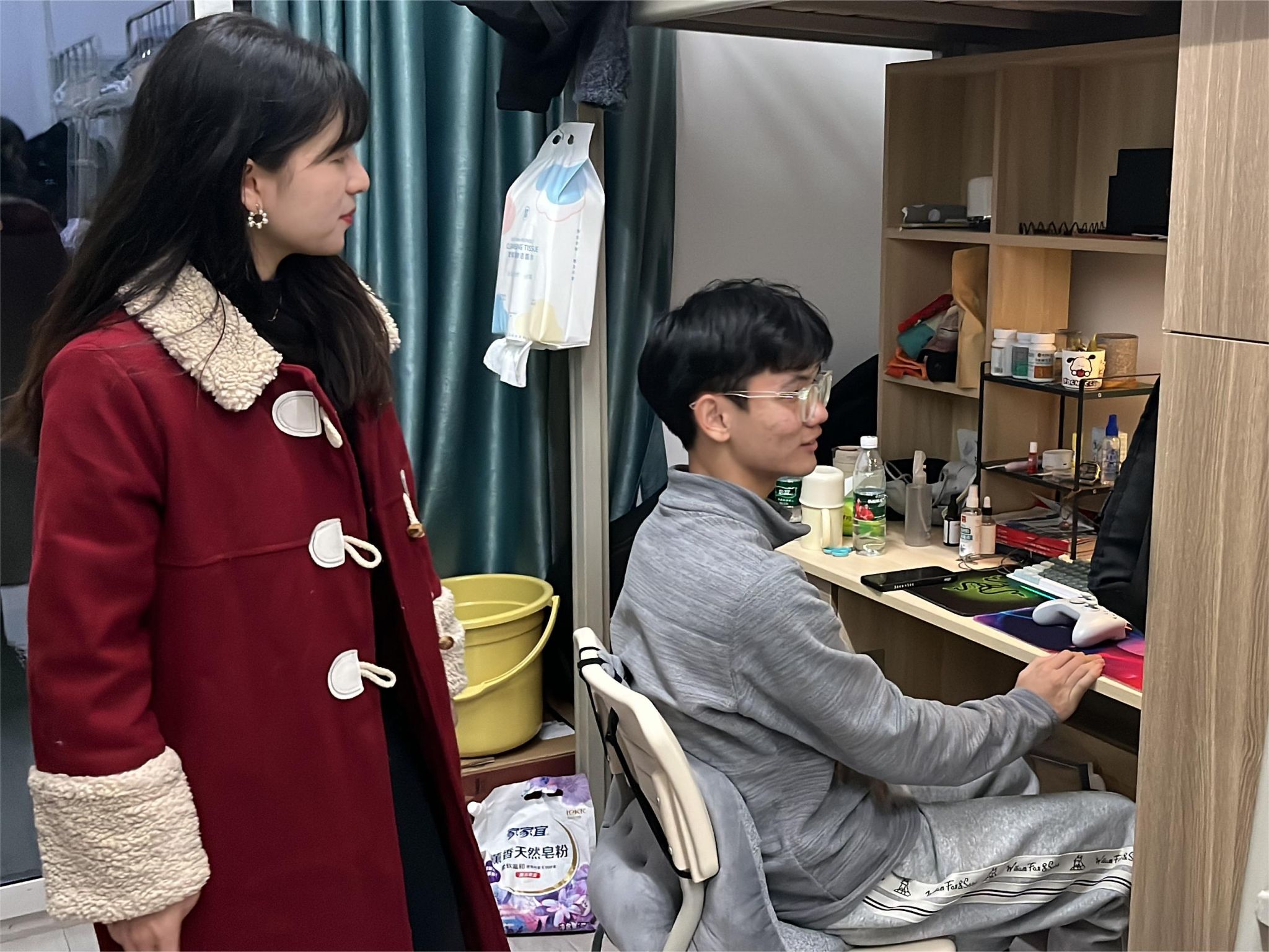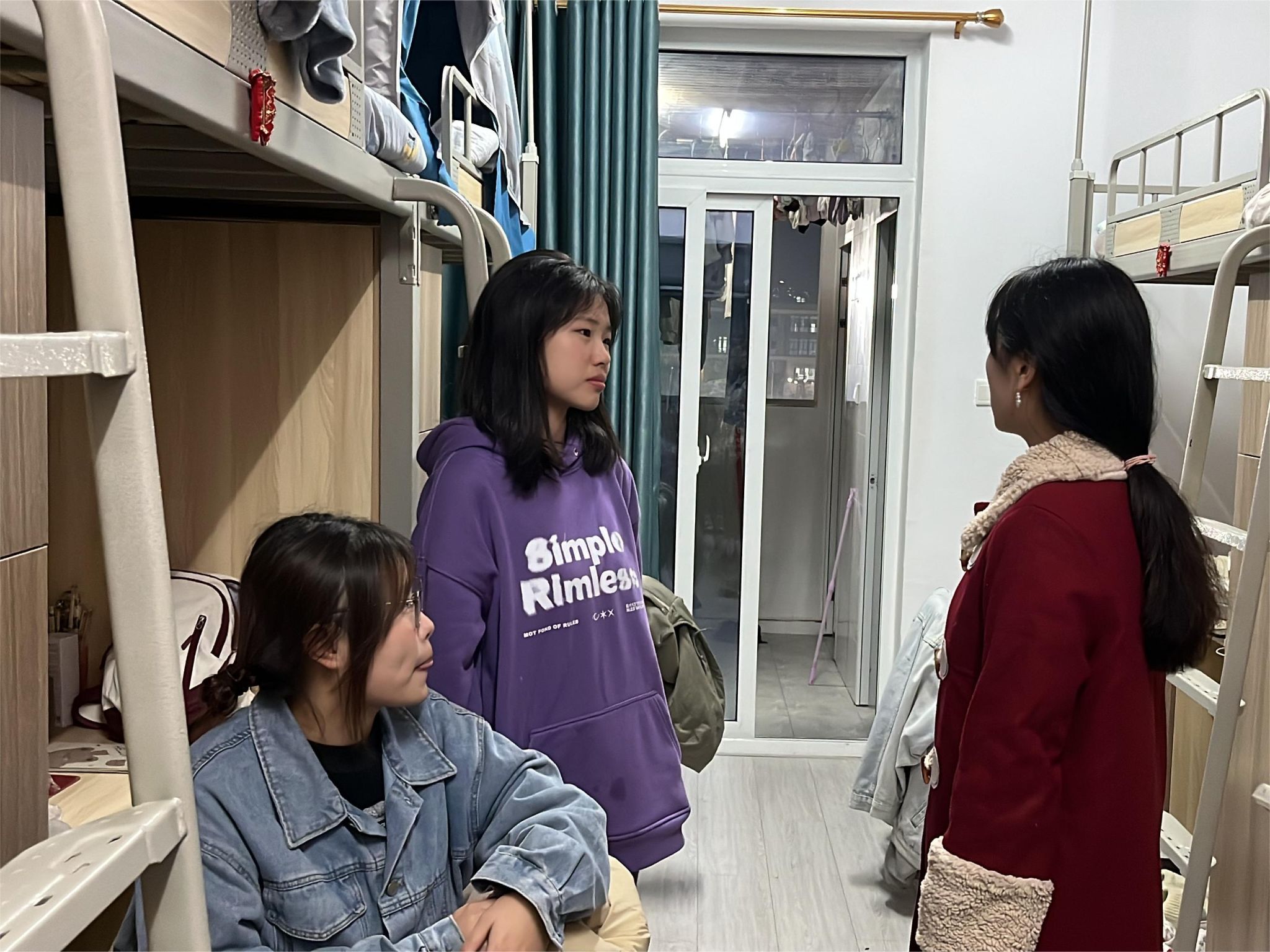 在寝室走访过程中,老师与同学们进行了深入的交流,询问同学们的学习生活及身心健康状况,对同学们的疑惑进行了耐心解答,并嘱咐各位同学注意预防季节性传染病,做好换季保暖和防范措施。陈燕华老师与专升本同学一起讨论了专业作业难题,同时解答了同学们对职业生涯规划书的疑问,打开了专升本同学未来发展方向的思路;张静老师、杨必菊老师、周静老师则侧重于关心同学们的生活状况,用着质朴却真挚的话语一遍遍叮嘱同学们注意天气冷暖,预防感冒及发烧。此外,权益女生部的成员们也积极收集同学们提出的权益相关问题,例如,寝室有同学使用洗衣机不规范出现各种卫生问题、阳台晾衣位置不足等寝室生活问题。